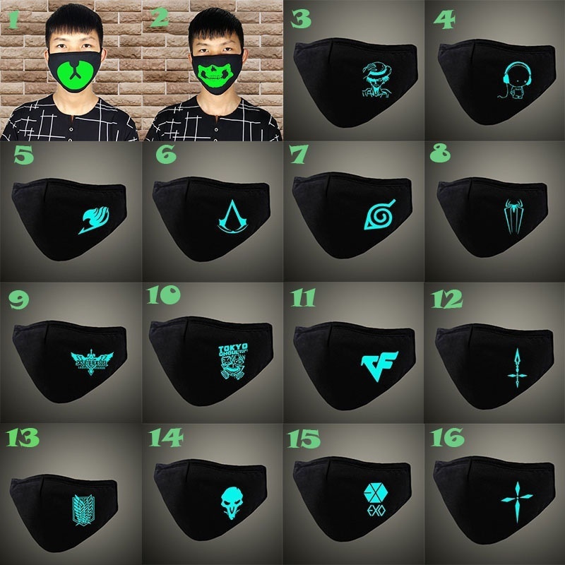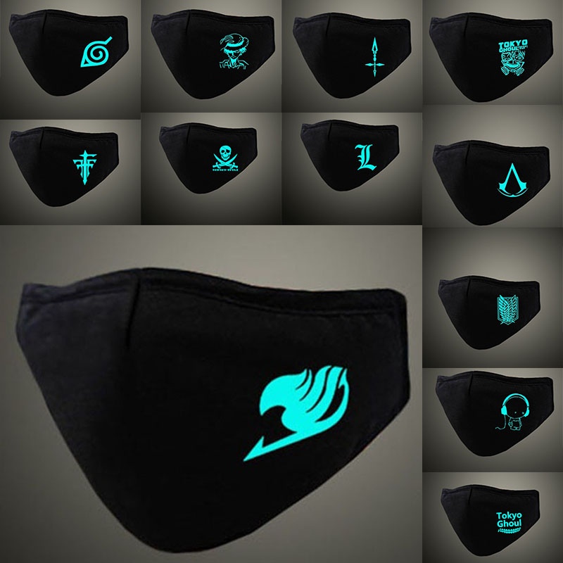 One Piece Mask Naruto Mask Anime Luminous Glow in the Dark Face Mask Washable Mask Cotton Dust-proof Cartoon Masks