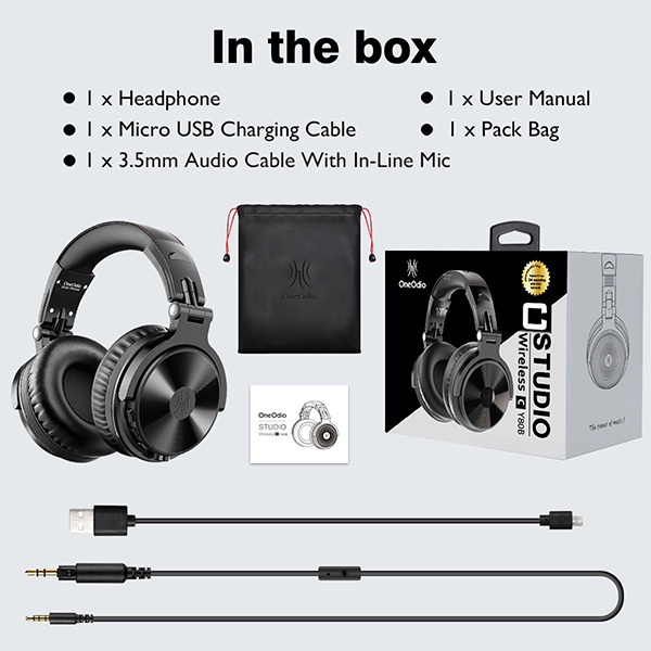 Oneodio Pro-C Bluetooth Over Ear DJ Headphone with Wireless or Wired Black (Pro C)