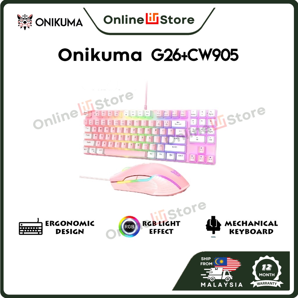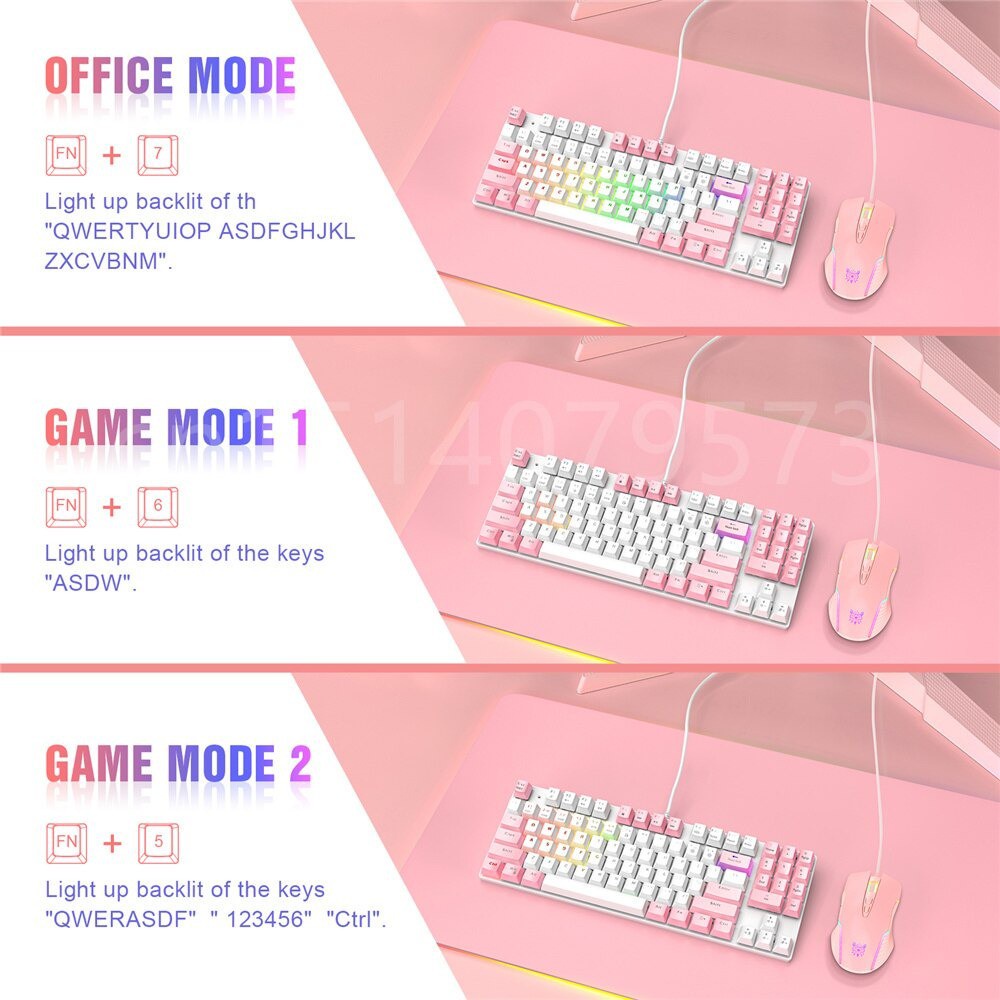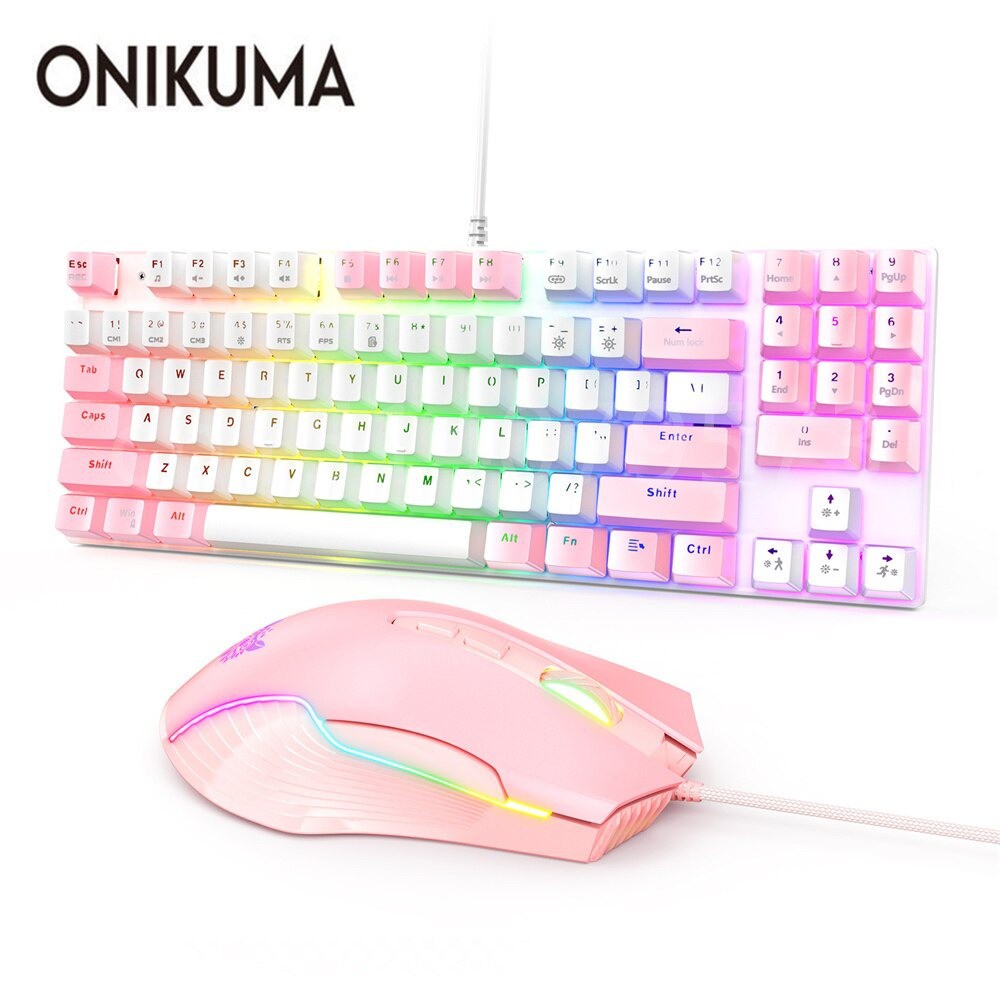 Onikuma G26 + CW905 Pinky RGB Combo Gaming Mechanical Keyboard and Optical Mouse, Wired Mechanical Keyboard Set + Mouse