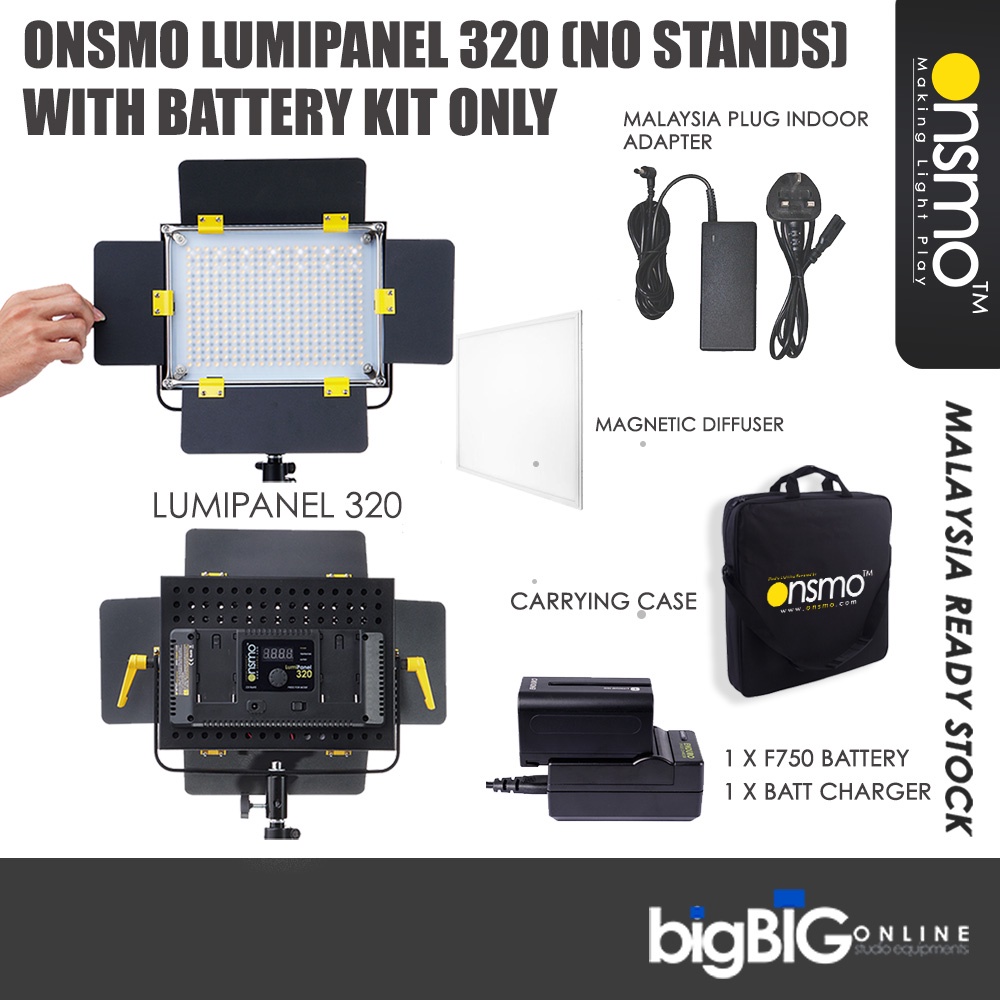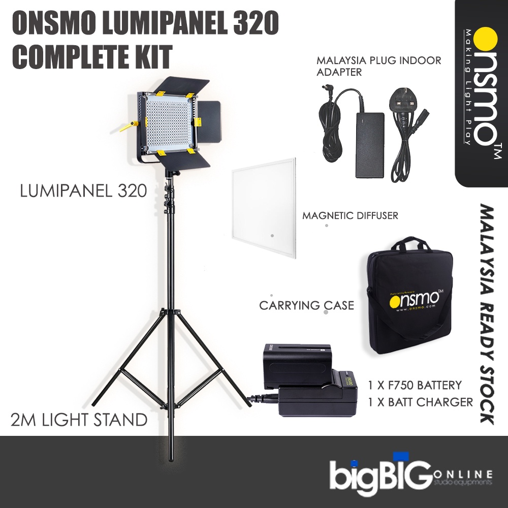 Onsmo Lumipanel 320 (1 Light Kit) LED Panel 3200K to 5600K for Video Filming, Live Streaming, Facebook Live
