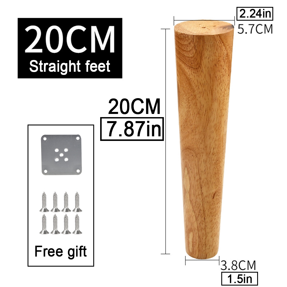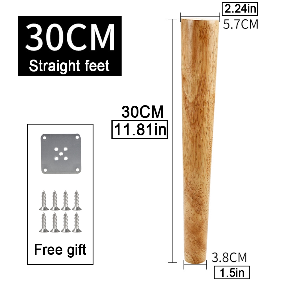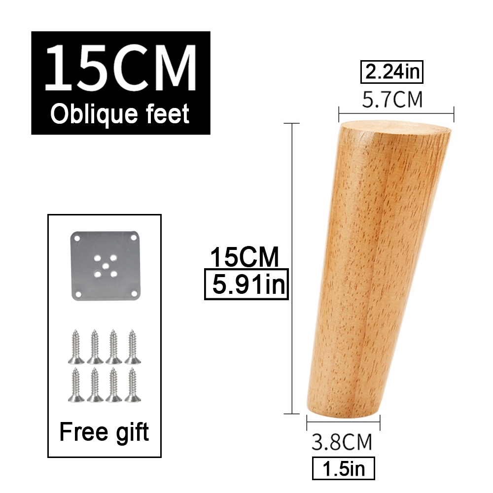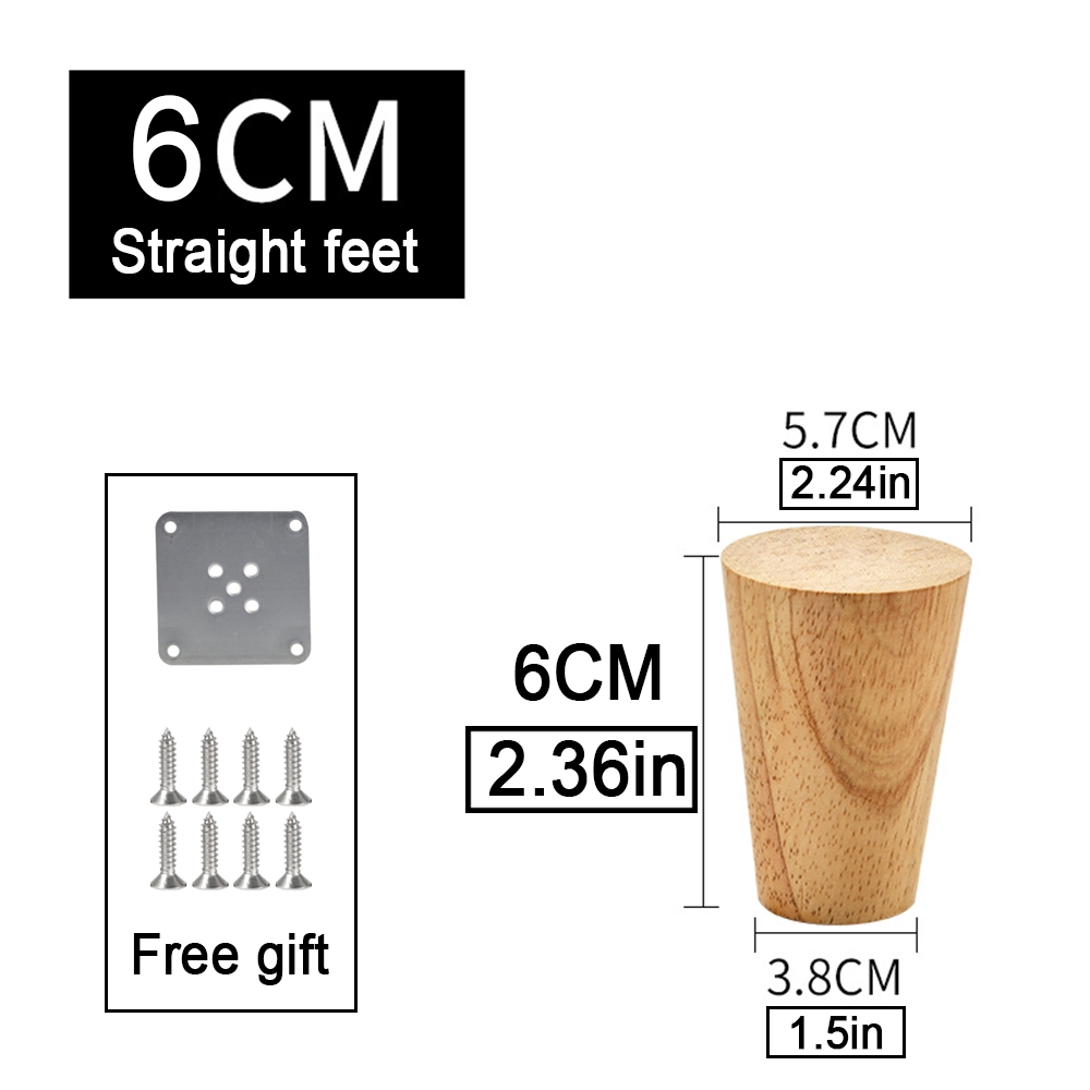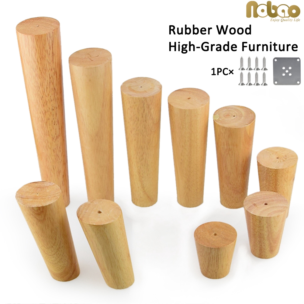 Onuobao Oak Furniture Leg 6-70cm Available Soild Wood Cone Sofa Legs With Iron Plate&Screw 1pcs