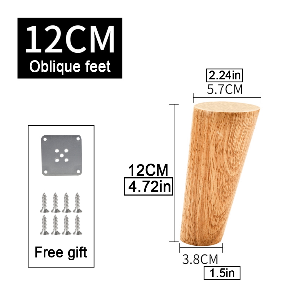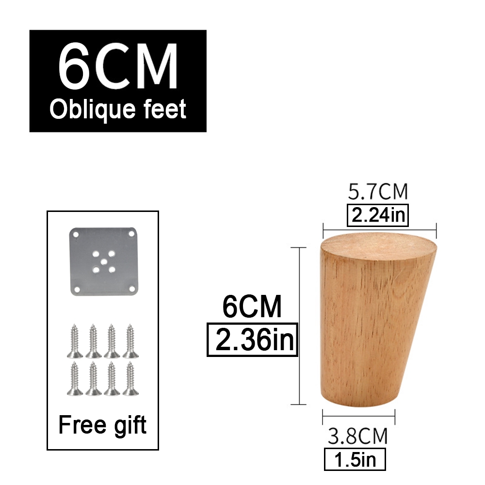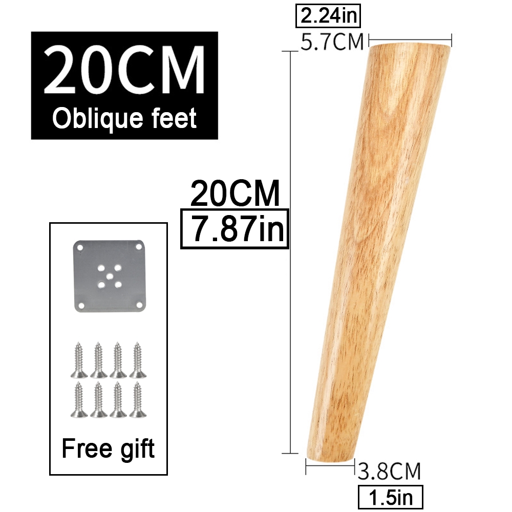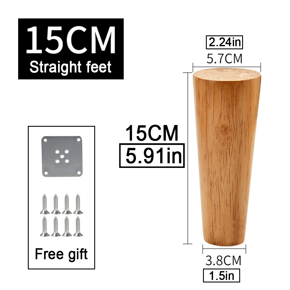 Onuobao Oak Furniture Leg 6-70cm Available Soild Wood Cone Sofa Legs With Iron Plate&Screw 1pcs