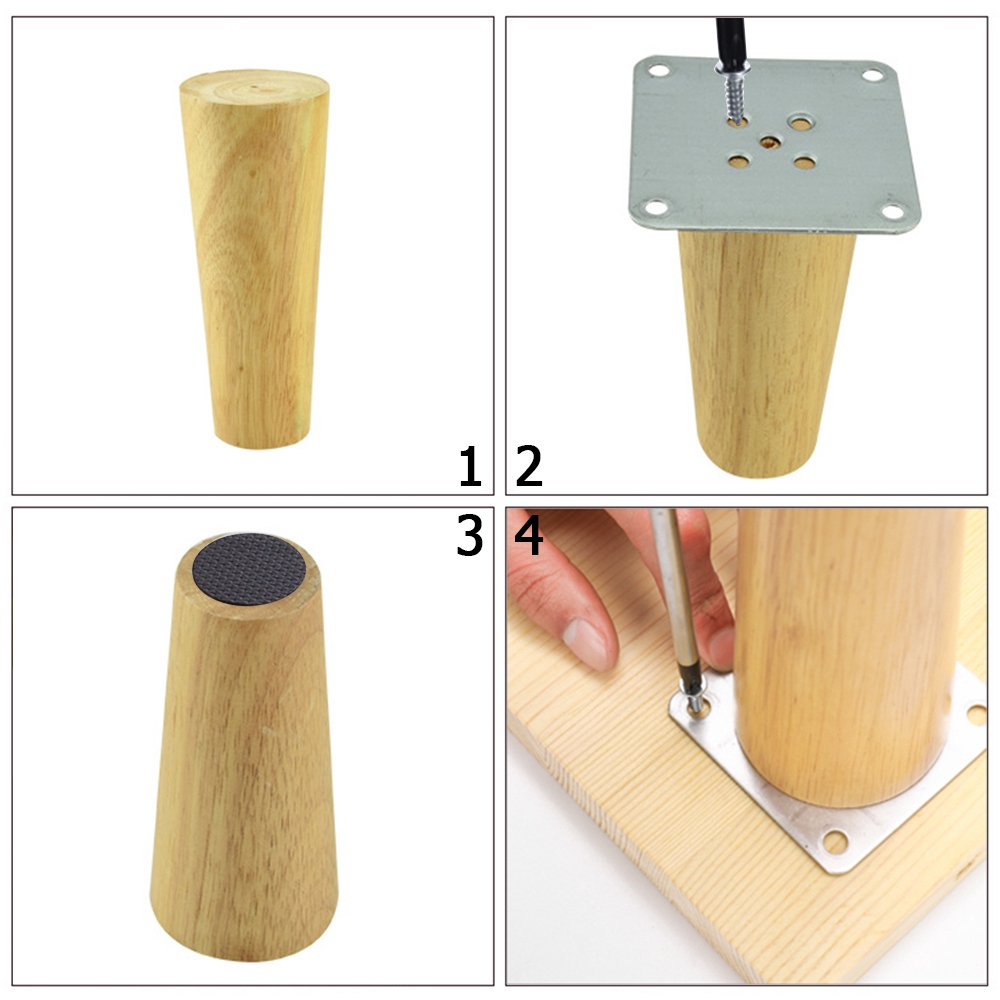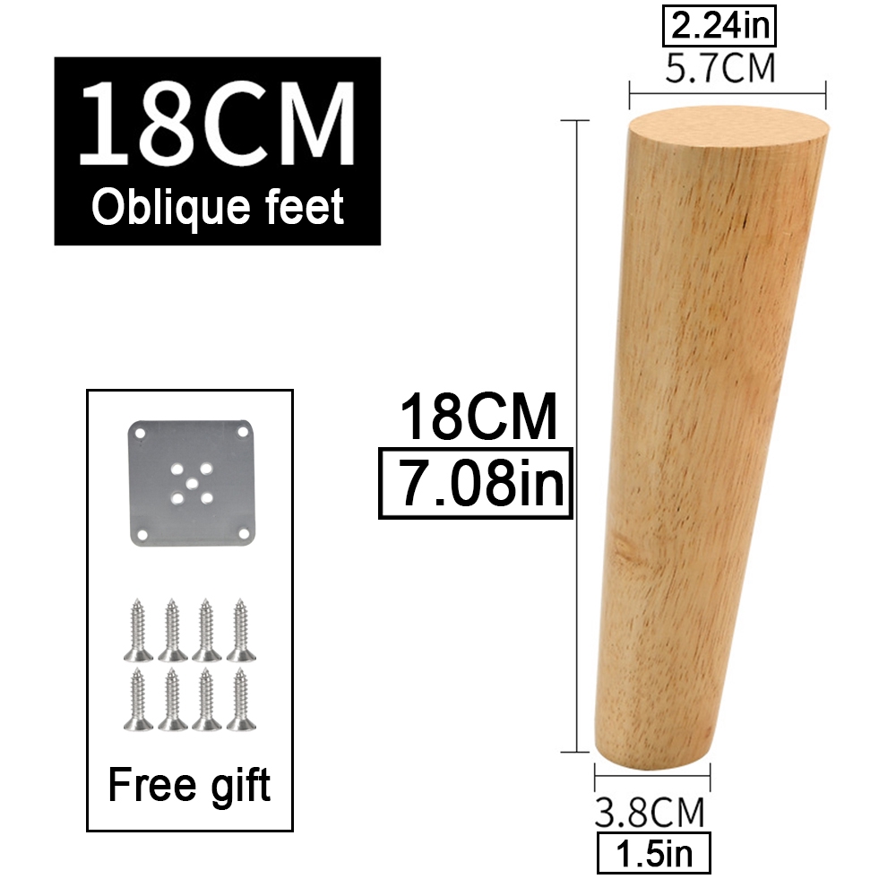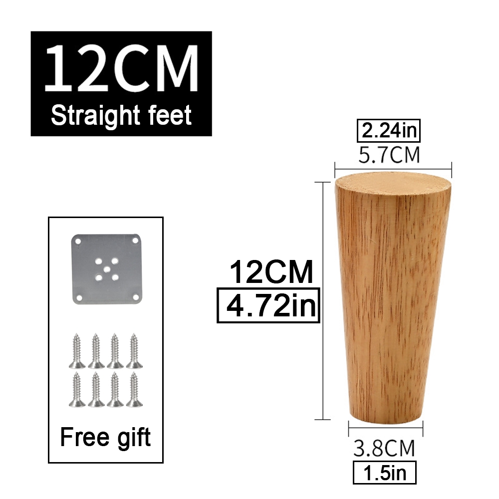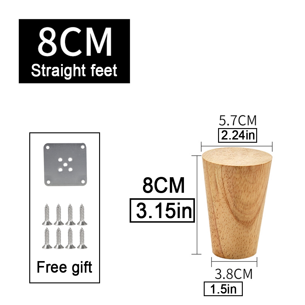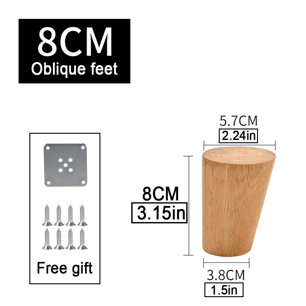 Onuobao Oak Furniture Leg 6-70cm Available Soild Wood Cone Sofa Legs With Iron Plate&Screw 1pcs