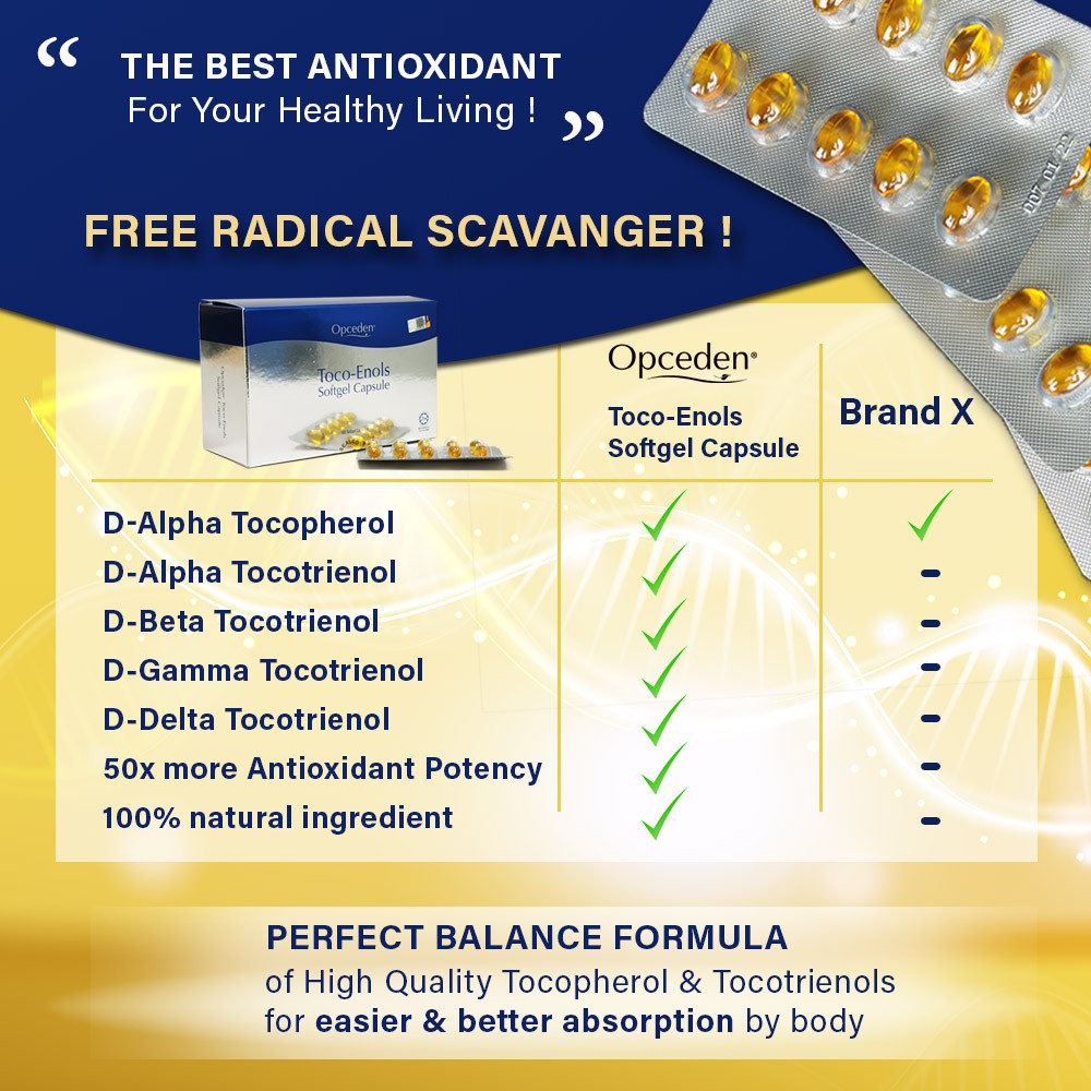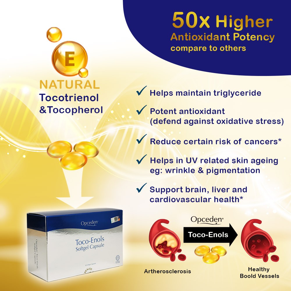 Opceden Toco-Enols 60 Softgel Capsules - 440mg Natural Vitamin E Tocotrienol Tocopherol 60X Higher Antioxidant Potency
