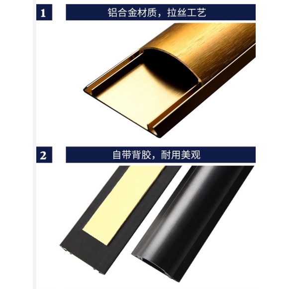 Open-Line Aluminum Alloy Semicircle Floor Trunking Stickers Ground Arc Anti-Stepping Household Stainless Steel Golden Surface-Mounted Beautifying Trunking