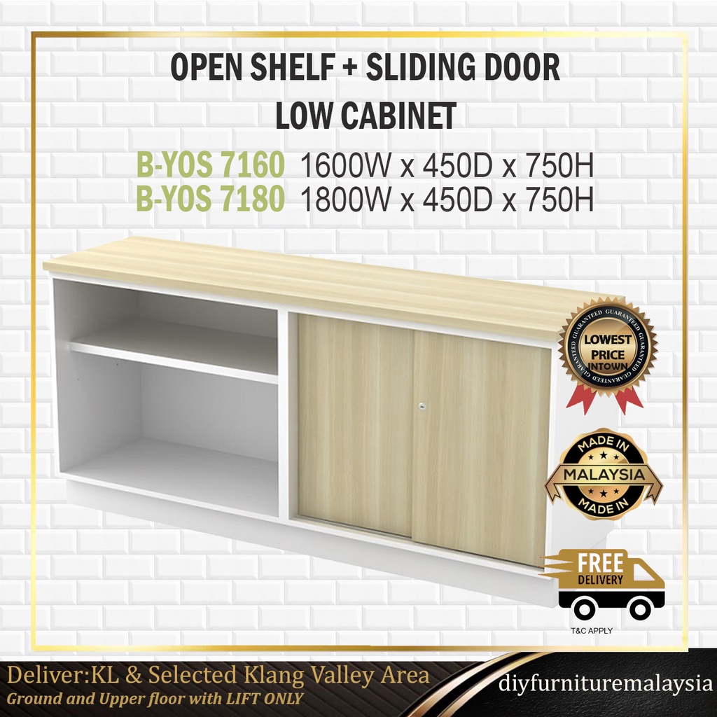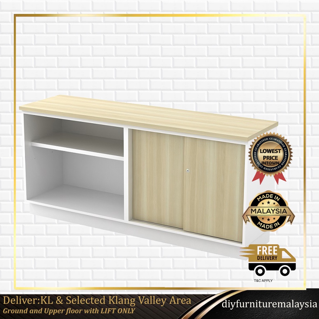 Open Shelf & Sliding Door Low Office Filing Cabinet | Rak Kabinet Pejabat | Office Storage Cabinet