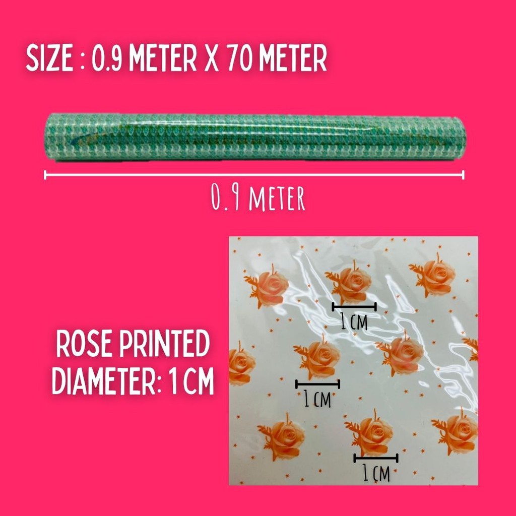 Fast Shipping Opp Transparent Wrapping Hamper Plastik Hamper 0.9 meter x 70 meter corak bunga Rose Hamper Murah
