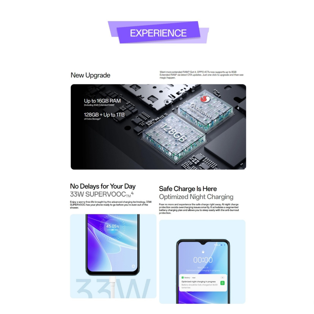 Oppo A77S 4G LTE/CPH2473 (8GB+128GB) 50Mp, Qualcomm SM6225 Snapdragon 680 4G, 33W