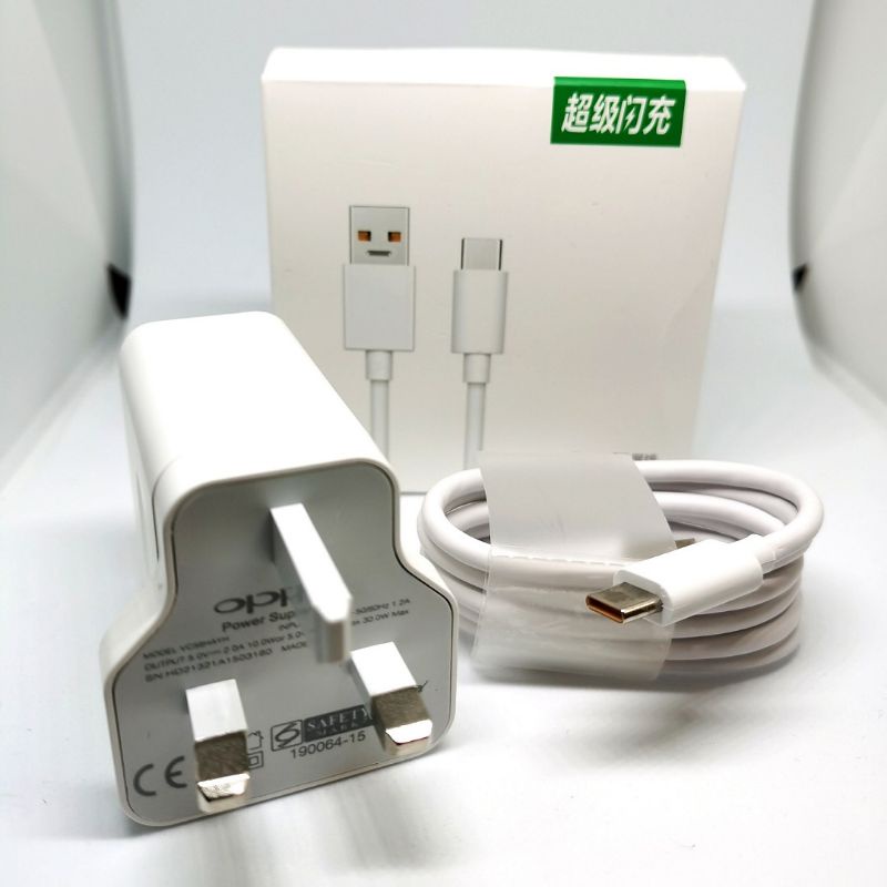 Oppo Charger 30w SuperVOOC Fast Charging With Type C USB Cable For A77 A76 74 A53 A54 A57