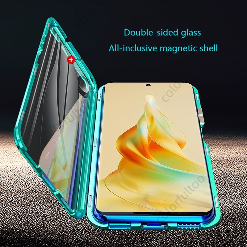 Oppo Reno 12F 5G Phone Case For Oppo Reno 12 PRO 12Pro Reno12 Reno11F Reno 11 Pro 5G Flip Cover Metal Magnetic Double Sided Tempered Glass Mobile Casing Shockproof Hard Back Cover
