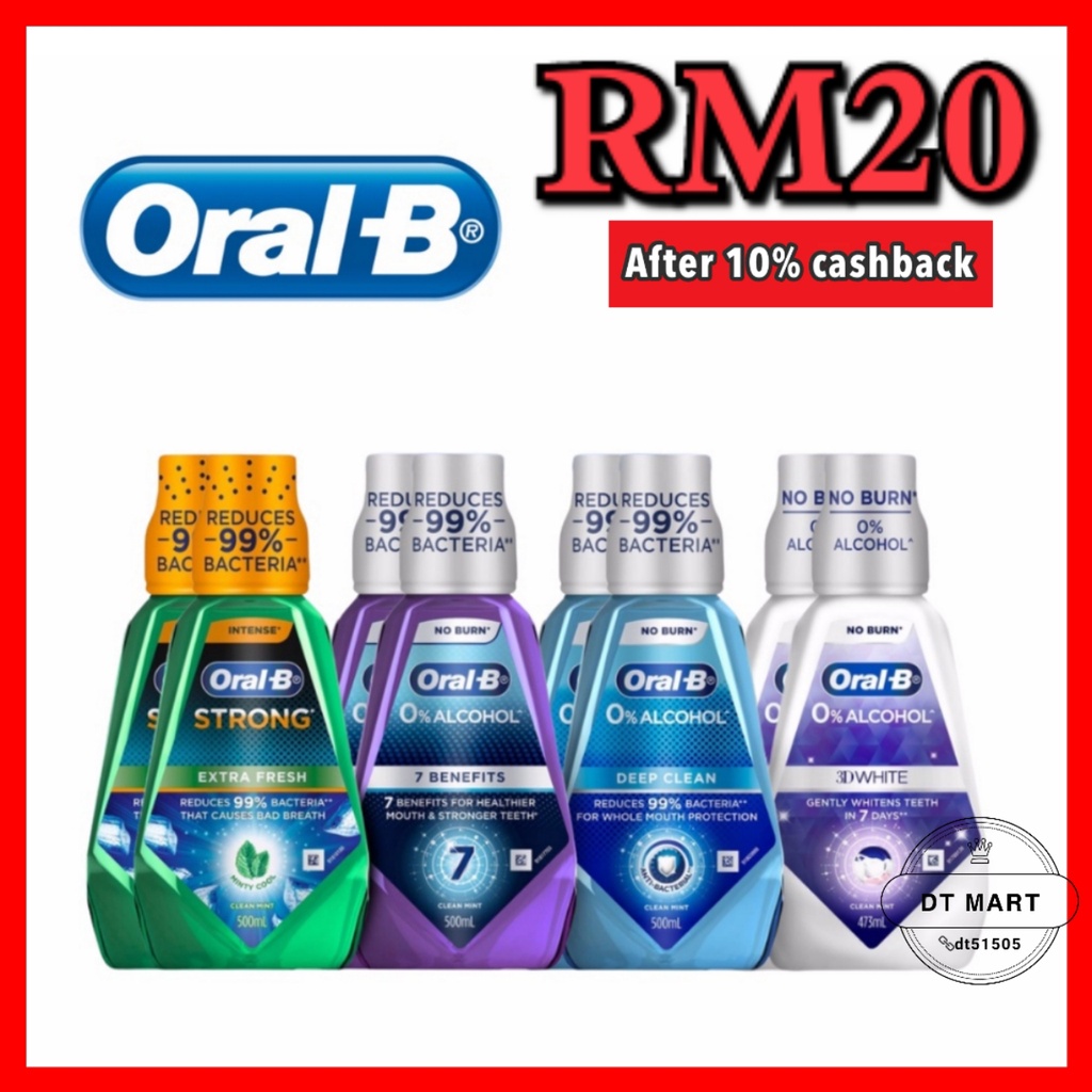 Oral-B 3D White Clean Mint / Deep Clean / 7-Benefits / Extra Fresh Mouthwash 500ml x2