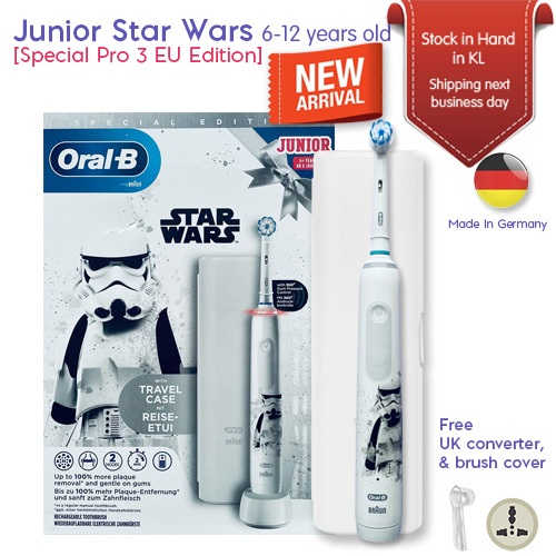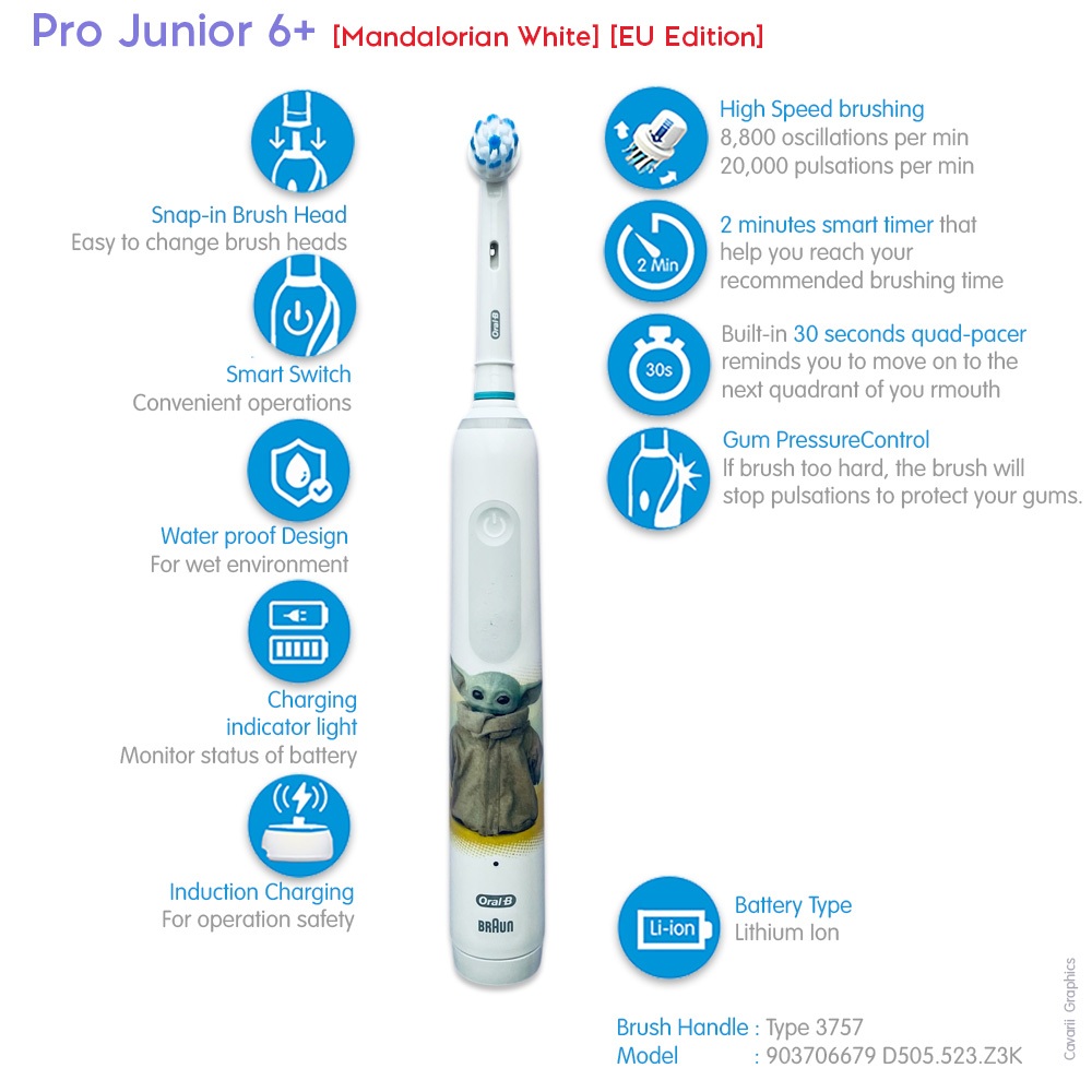 Oral-B Junior Pro 3 Electric Toothbrush for Children 6 - 12 Years old with Visual Pressure Control [EU Edition]