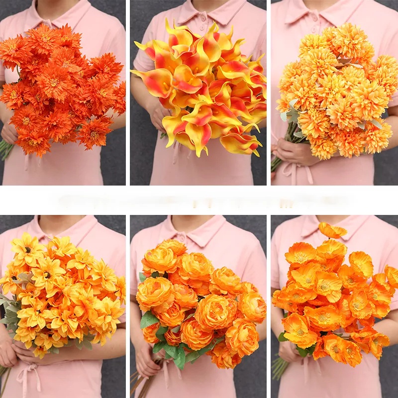 Orange seriesfaux flower bouquet orange series flower material simulation green leaf wedding stage decoration fake flower orange series flower material rose arrangement ground row flowers