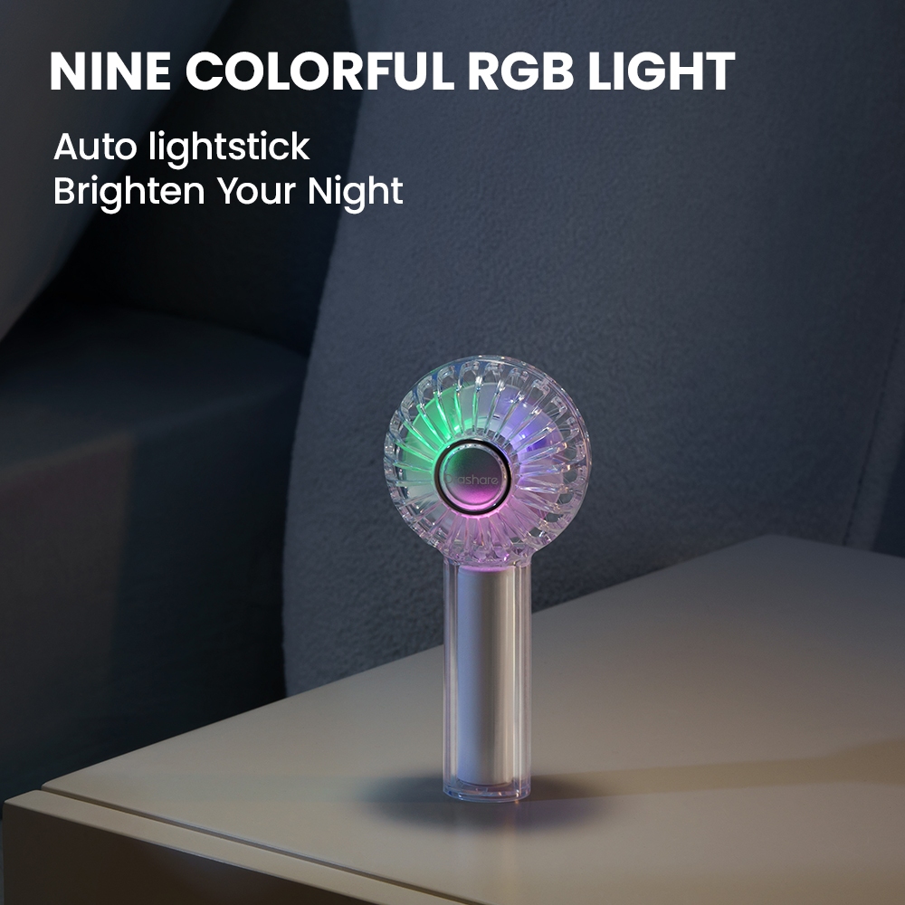 Orashare HF02T Mini Handheld Fan Transparent RGB Lights 3-Speed USB Rechargeable Portable Kipas Mini Fan