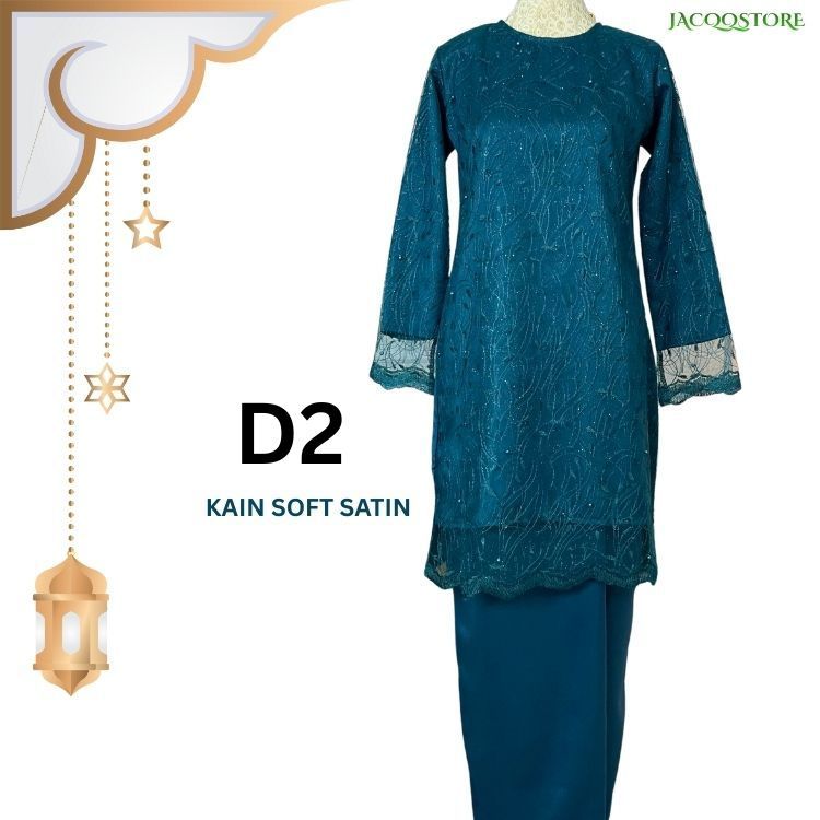 2026 Baju Kurung Raya Teal Blue Viral Kain Soft Satin