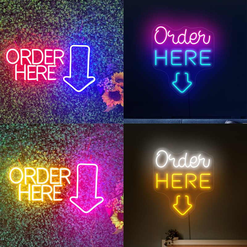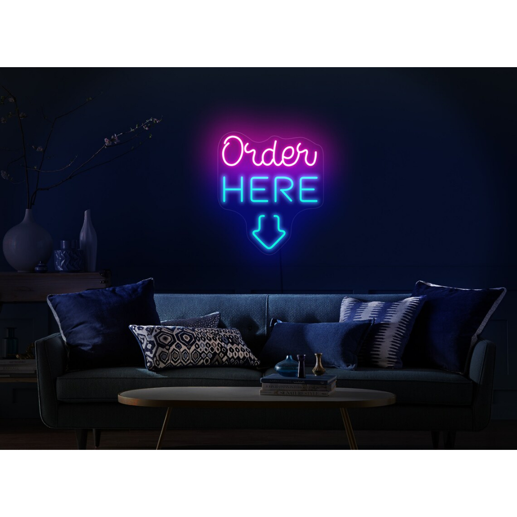 Order Here Neon Sign for Business-Adjustable Brightness Neon Lights Sign for Party Bar Salon Stores Shop Hotel Wall Decor With Hanging Chain for Store Windows