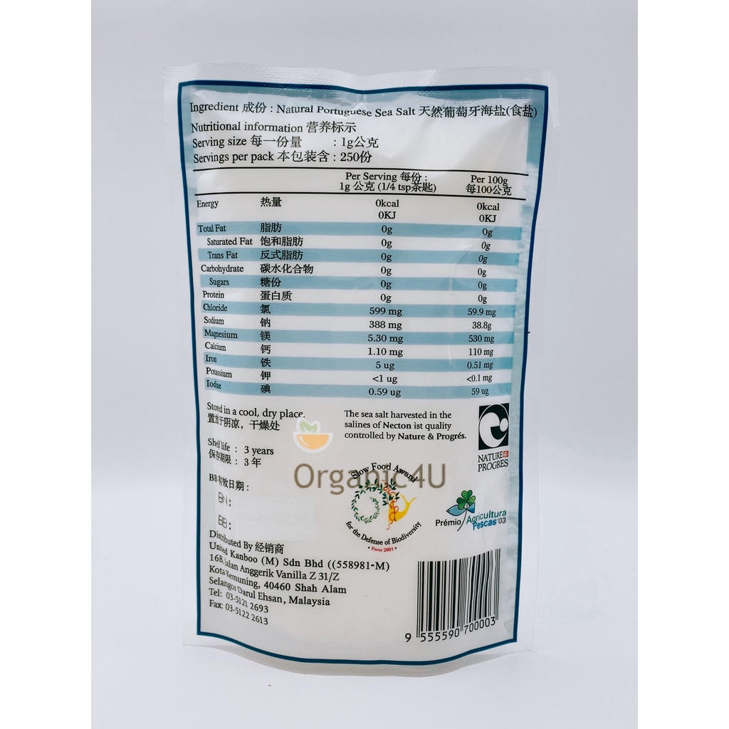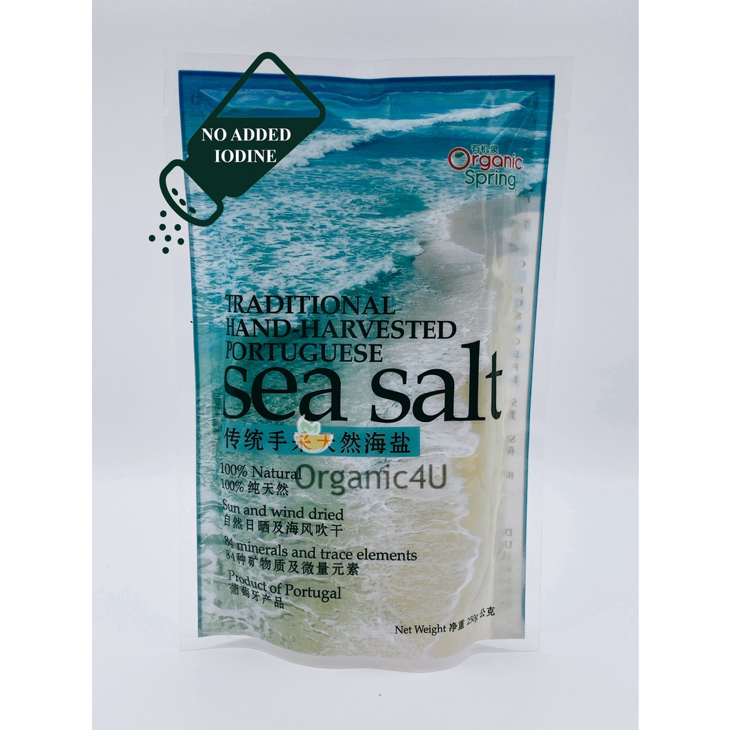 Organic Spring Natural Portuguese Sea Salt 250g (Non-Iodized, No Iodine Added)
