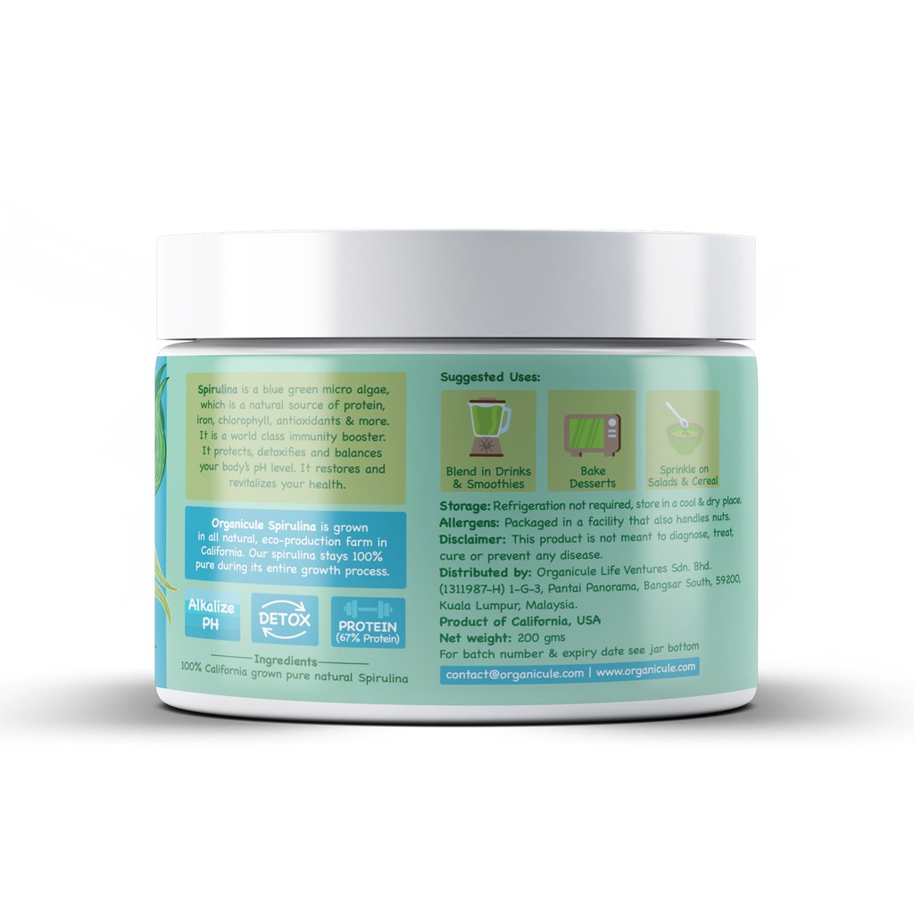 Organicule Spirulina Powder [200g] | Mineral Rich | Heavy metal detox | Authentic | From California