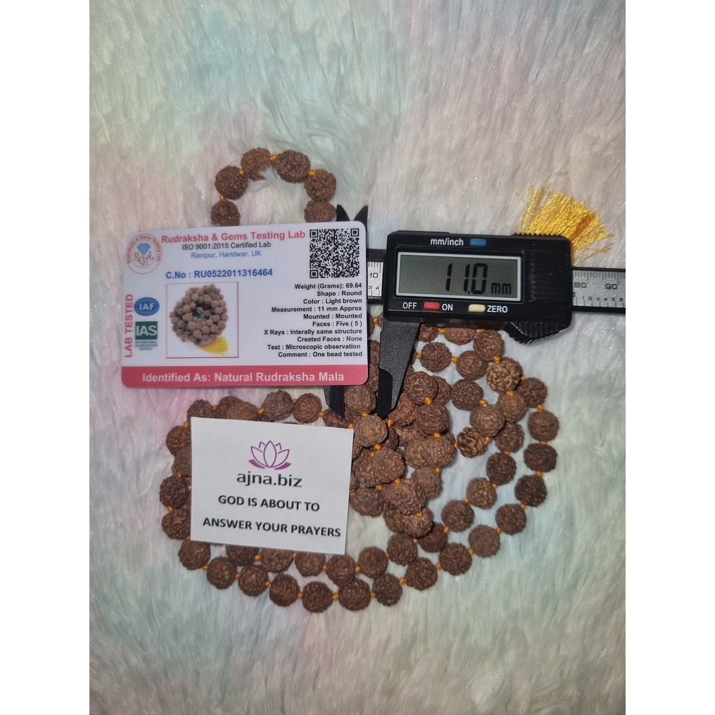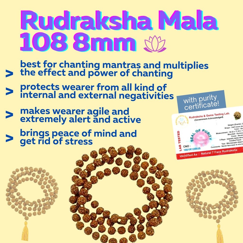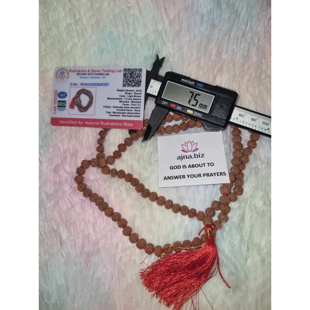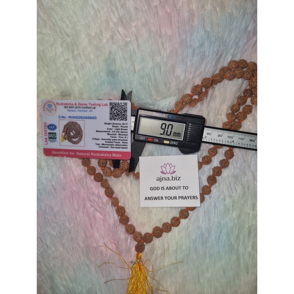 Original 5 Face Rudraksha 108 Mala/Malai (8mm) Rudraksha Bead With Lab Certificate