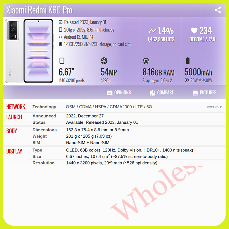 Original AMOLED For Redmi K60 K60 Pro LCD Display Touch Screen Replacement