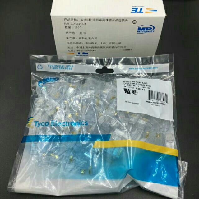 Original AMP RJ45 CAT6 CAT5 CAT5e 100pcs Head Modular Plug Connector Clip Jack