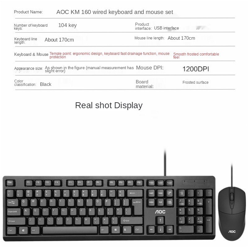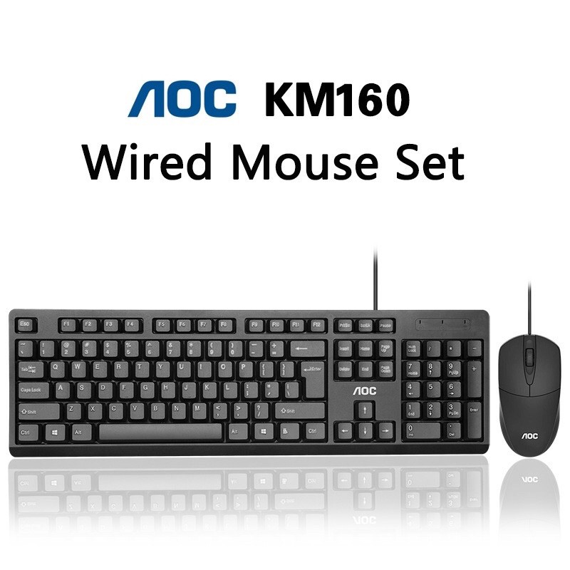 Original AOC KM160 Wired Keyboard + Mouse Combo Set, Office Computer Keyboard Desktop Gaming Keyboard