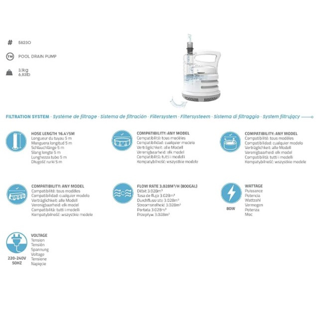 Original Bestway Electric Drain Pump Swimming Pool Automatic Drain Pump Pool Accessories Pum Keringkan Air Dalam Kolam