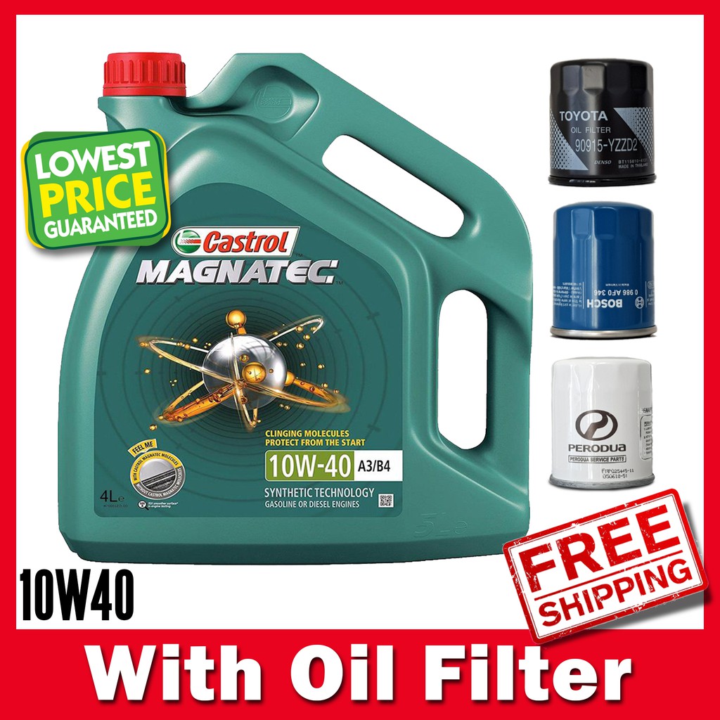 Original Castrol Magnatec SN/CF 10W-40 (10W40) Semi Synthetic Engine Oil 4L (Imported) with oil filter