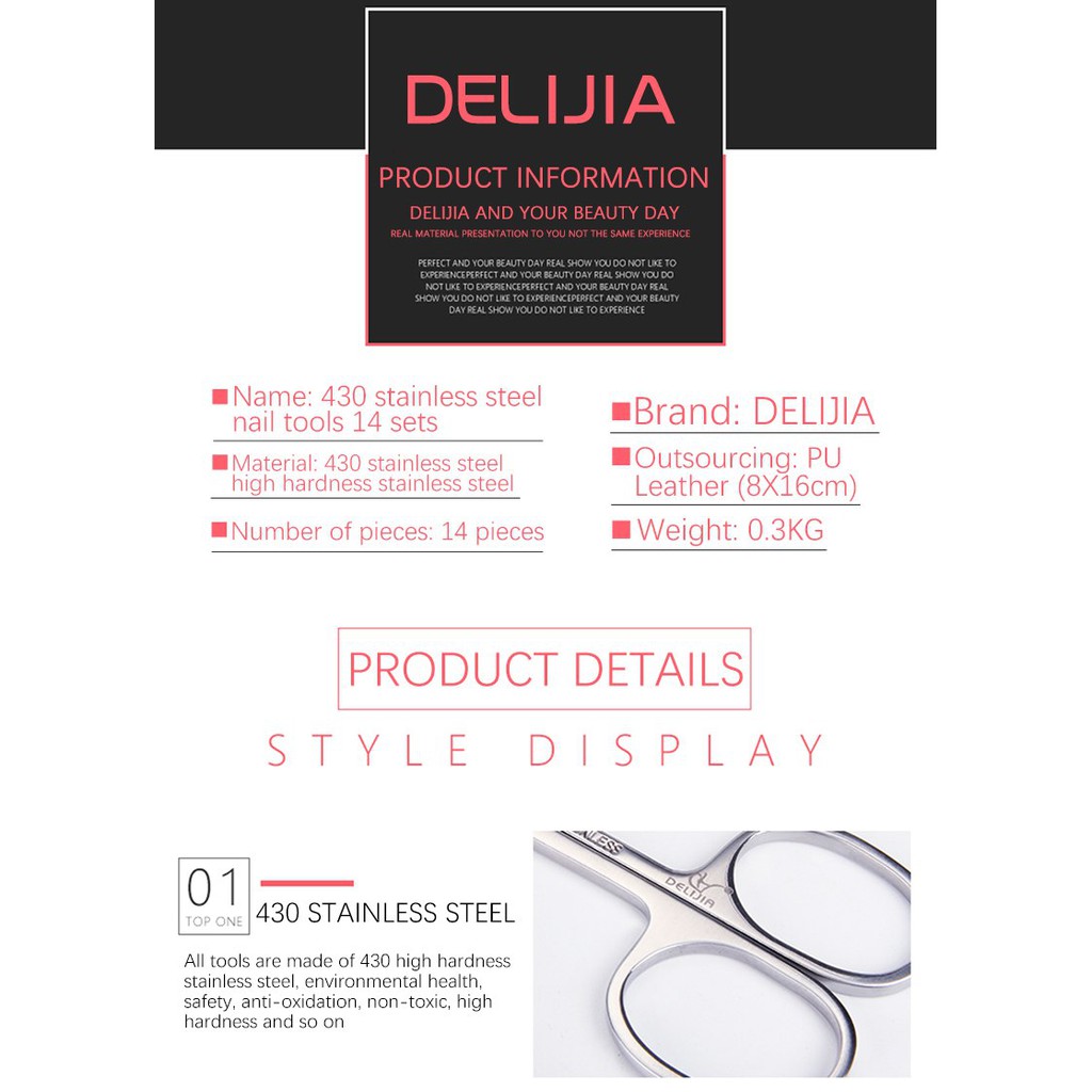 Original DeLiJia 14 in 1 Manicure Set Professional Nail Clipper