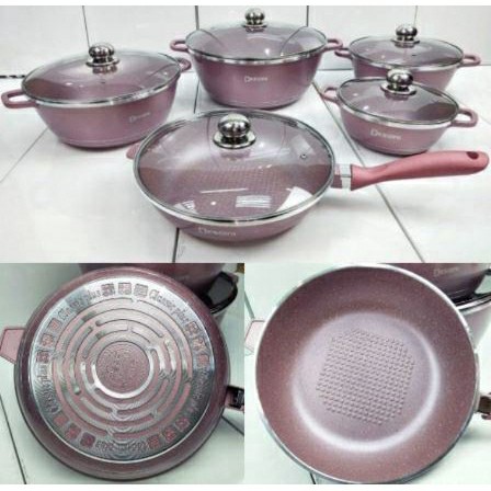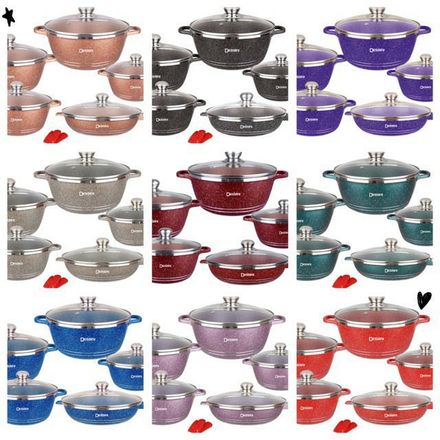 Original Dessini 12pcs Set of Wheat Rice Stone Pot Set Cooking Frying Pan Non-stick Kitchen- Set Periuk