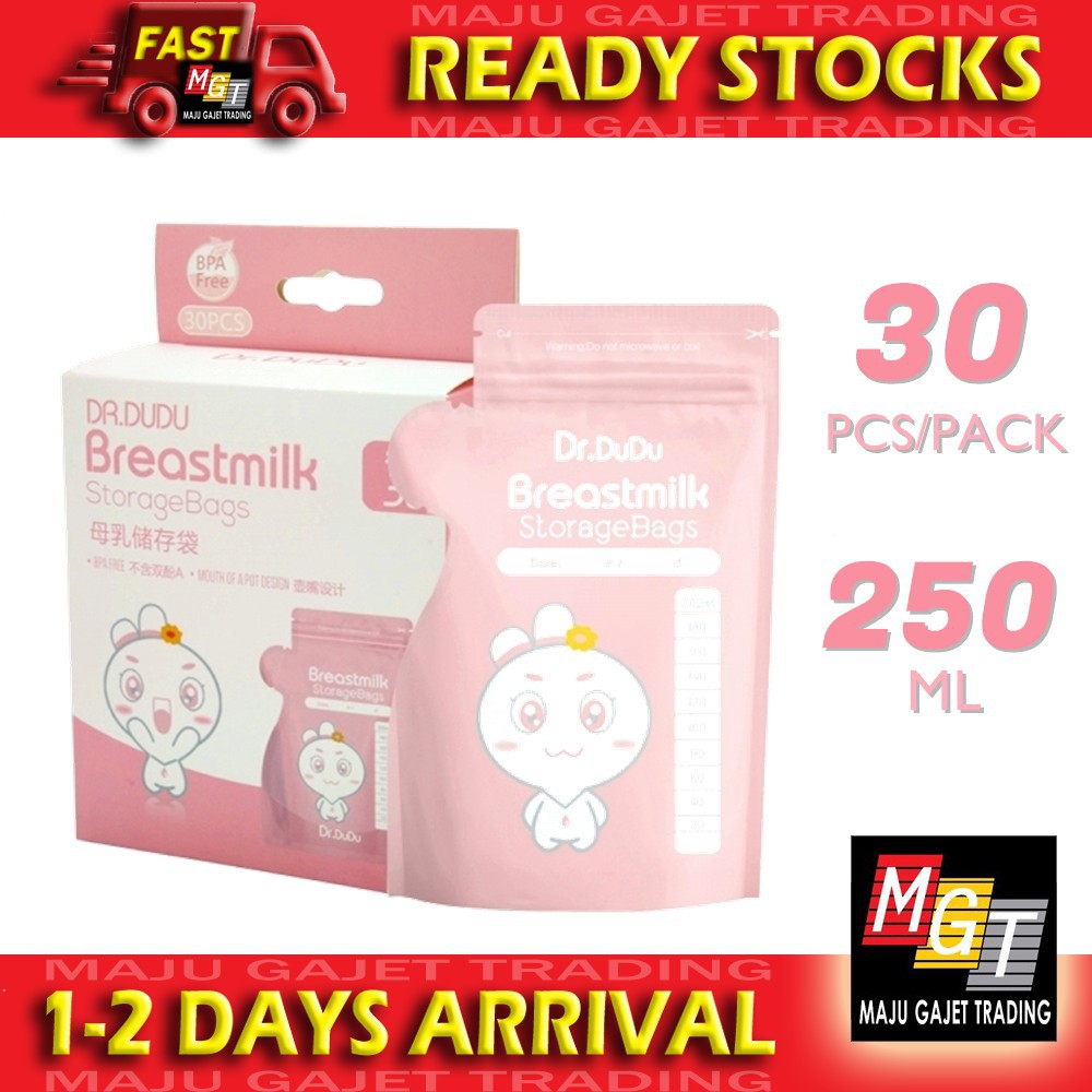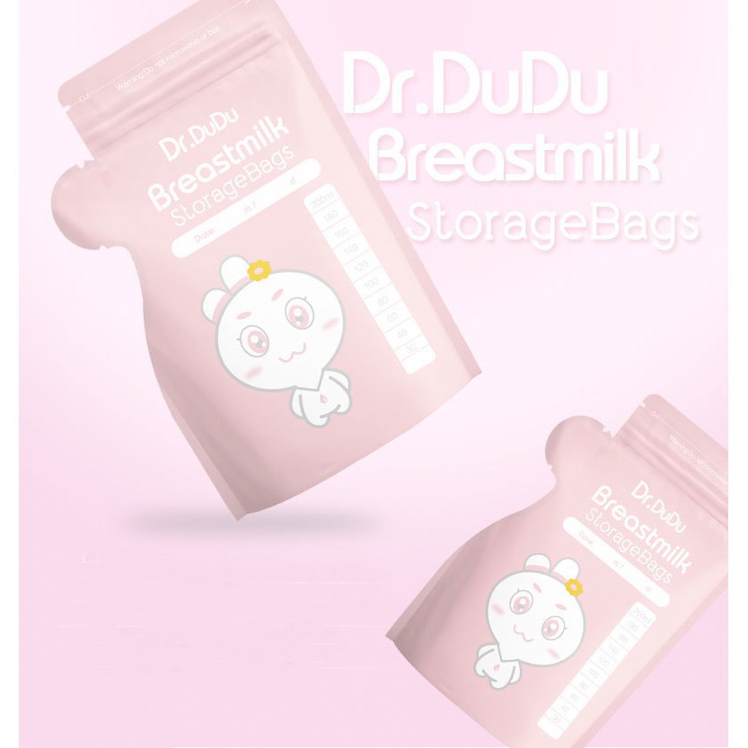 Original Dr Dudu BreastMilk Storage Bag Breast Milk with Zipper & Mouth Opener 250ml - 30 Pcs / Box
