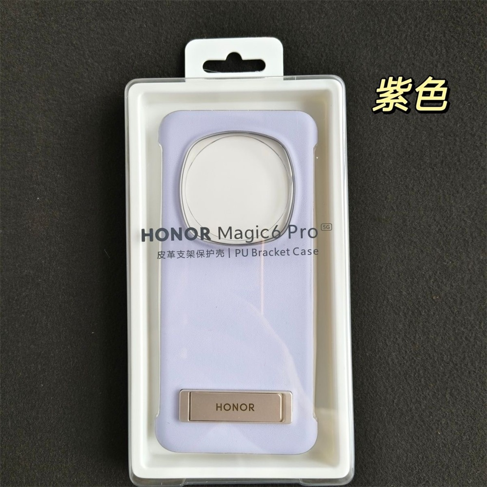 Original Genuine Leather Bracket Phone Stand Case For Honor Magic 6 Pro Magic6 PU Protective Shockproof Back Cover With Kickstand & Box