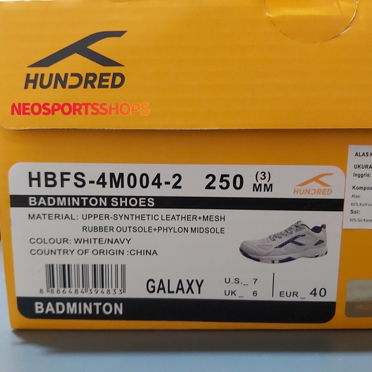 Original HNDRD Hundred Galaxy White Navy Badminton Shoes