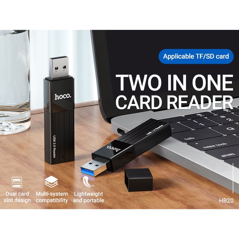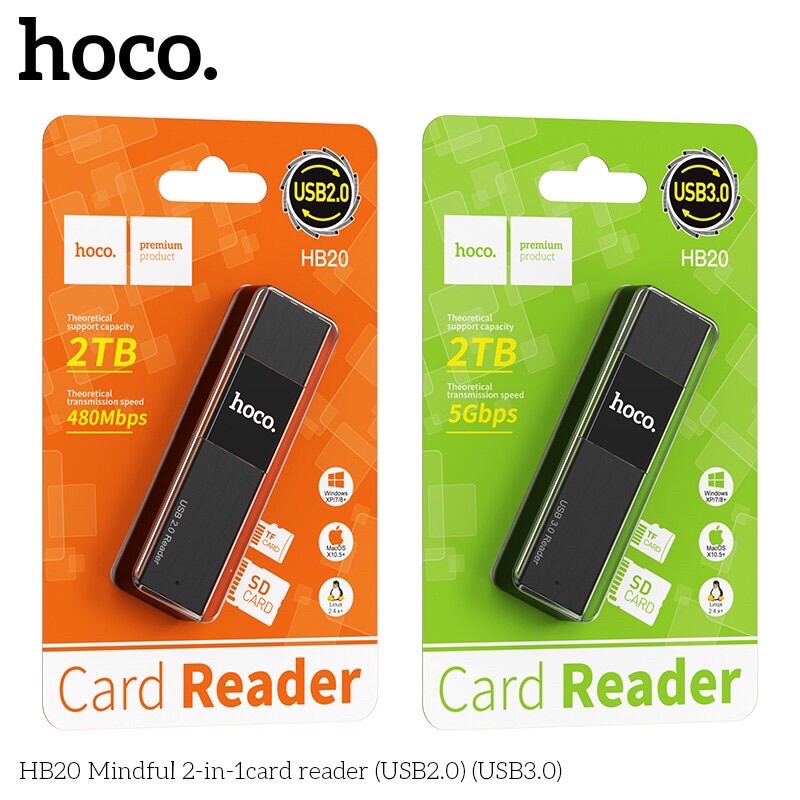 Original Hoco HB20 Mindful 2-in-1 SD Card Reader 5Gbps USB3.0/ 480Mbs USB2.0 OTG Memory Card Adapter