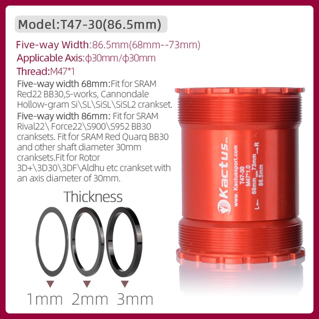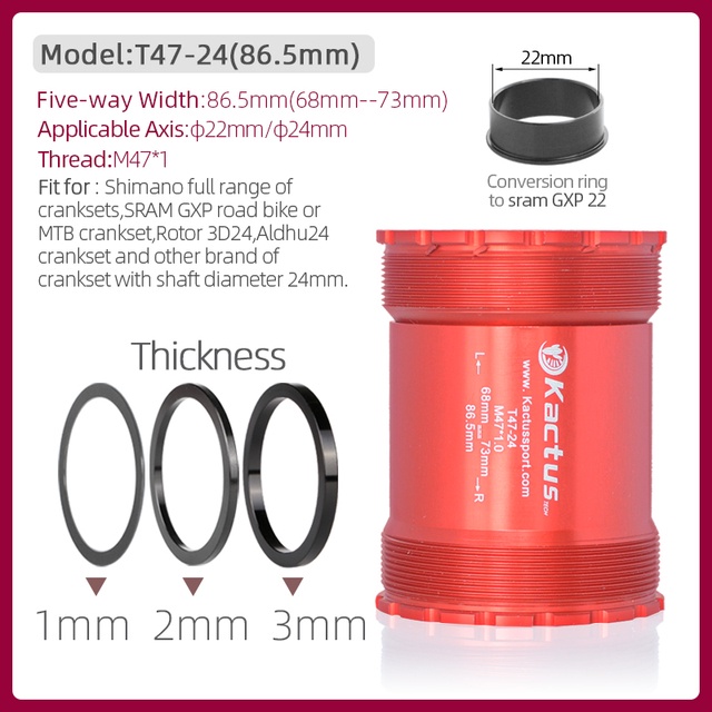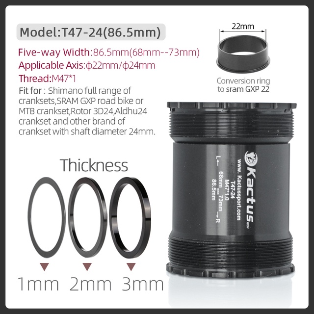 Original KACTUS Bicycle Bottom Bracket Ceramic Bearing BB T47 Thread 86.5mm for Trek/Shimano/ SRAM Mountain Road Bike Cranksets Central Movement