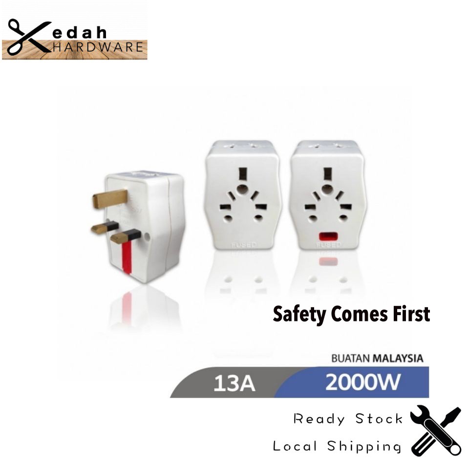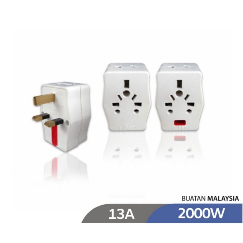 Original Lemax 3 Way Multi-Adaptor 13A Adapter Socket Wall Plug