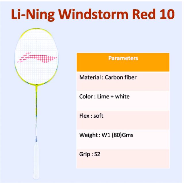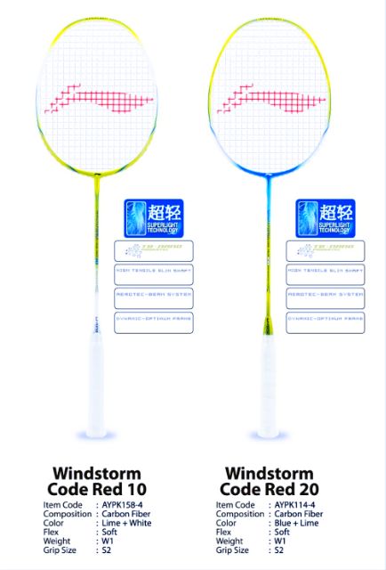 Original LiNing Windstorm Code Red 10 FREE LiNing No 1 STRING & LiNing GRIP