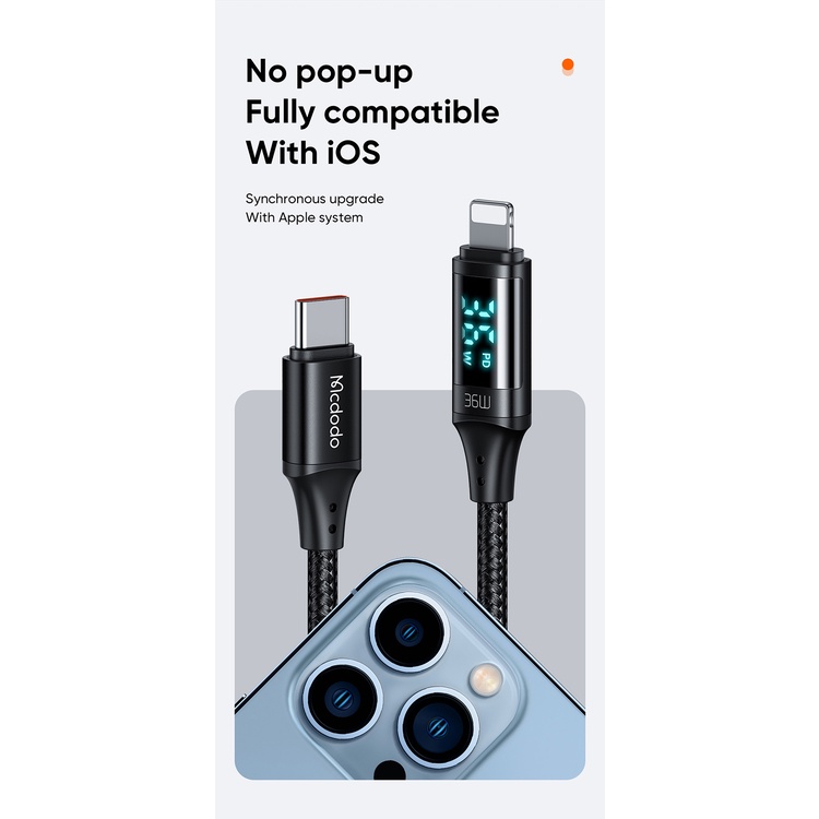 Original Mcdodo Cable 100W Type C to Type C / 36W PD Fast Charge LED Number USB C Data Cabel Kabel Compatible For iPhone
