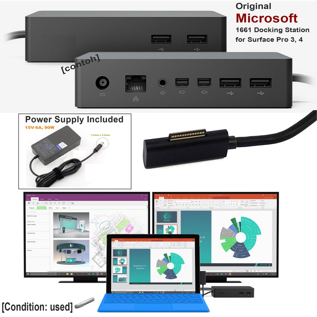 Original Microsoft Surface Pro 3, 4 surface Book 2 1661 Dock Docking Station with power supply adapter USED
