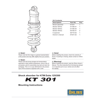 Original OHLINS KTM 125 200 390 DUKE 2013 2014 2015 2016 Rear Absorber Monoshock KT301