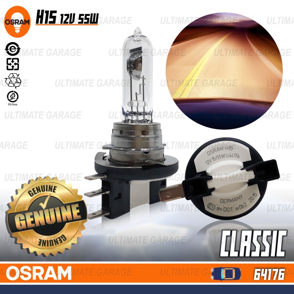 Original OSRAM H15 64176 Halogen Headlight Bulb Lamp DRL Audi A4 A6 Golf Jetta GLA Ford Ranger Lampu Mentol Day Light