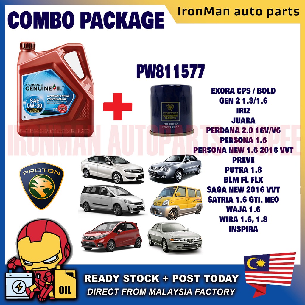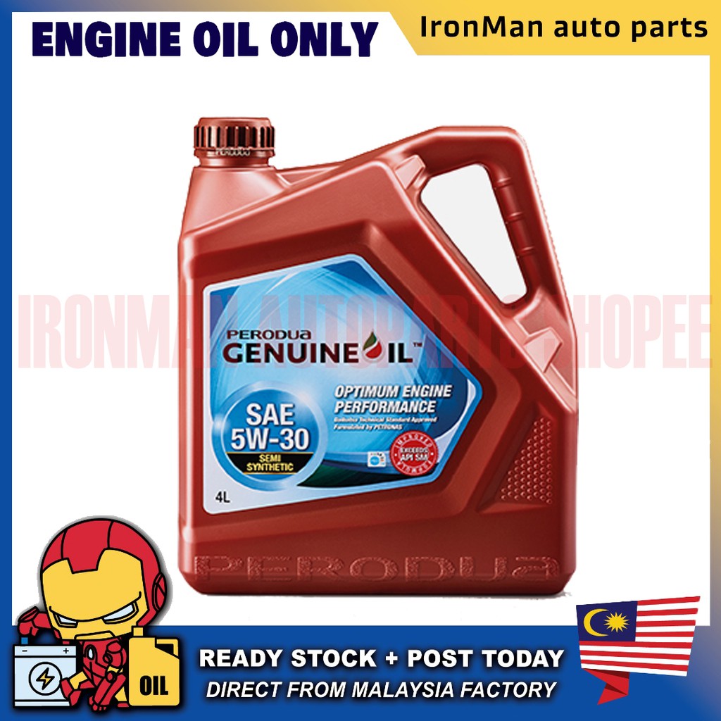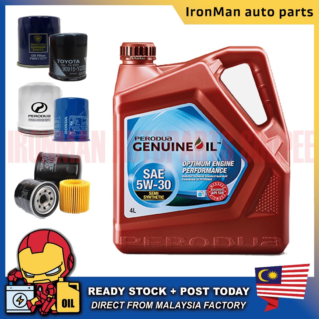 Original PERODUA 5W30 SEMI SYNTHETIC ENGINE OIL 4 LITER MYVI ALZA MYVI LAGI BEST 5W-30 Minyak Hitam Combo Oil Filter