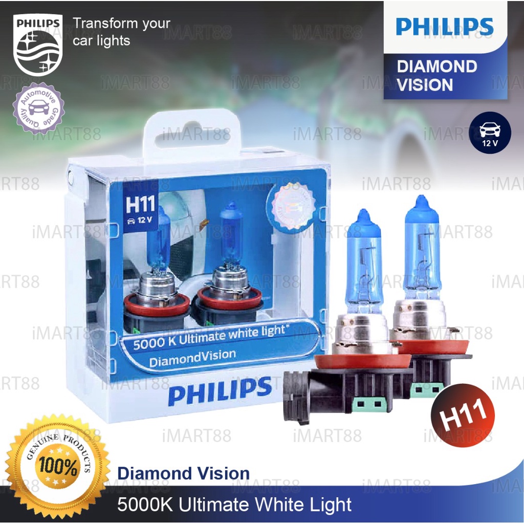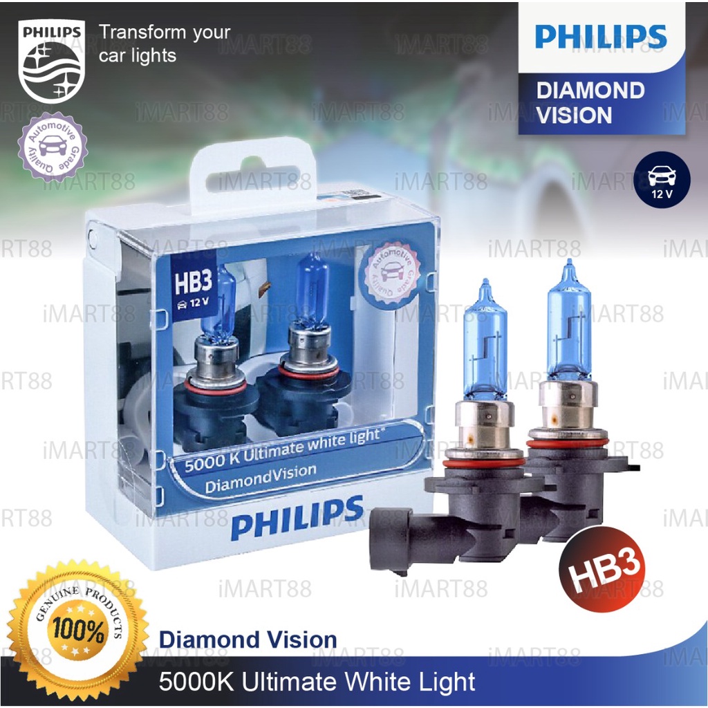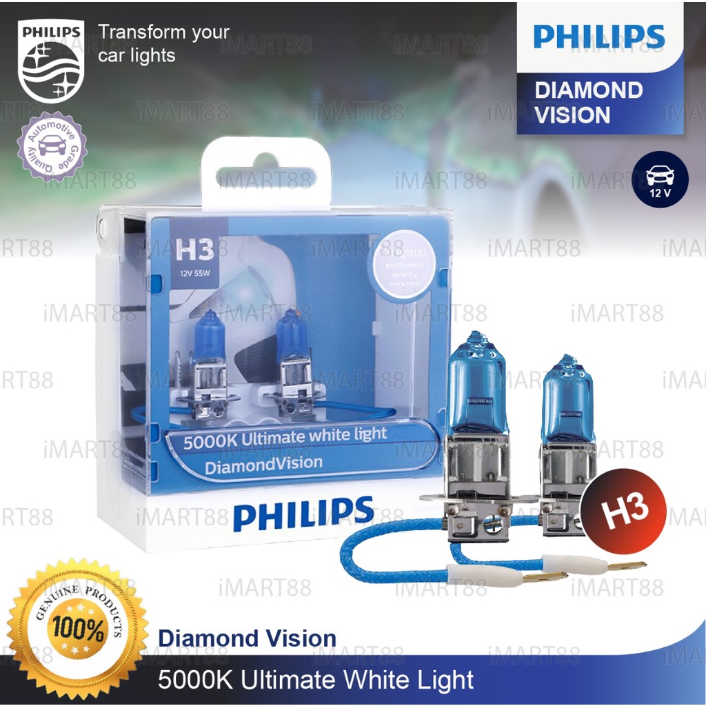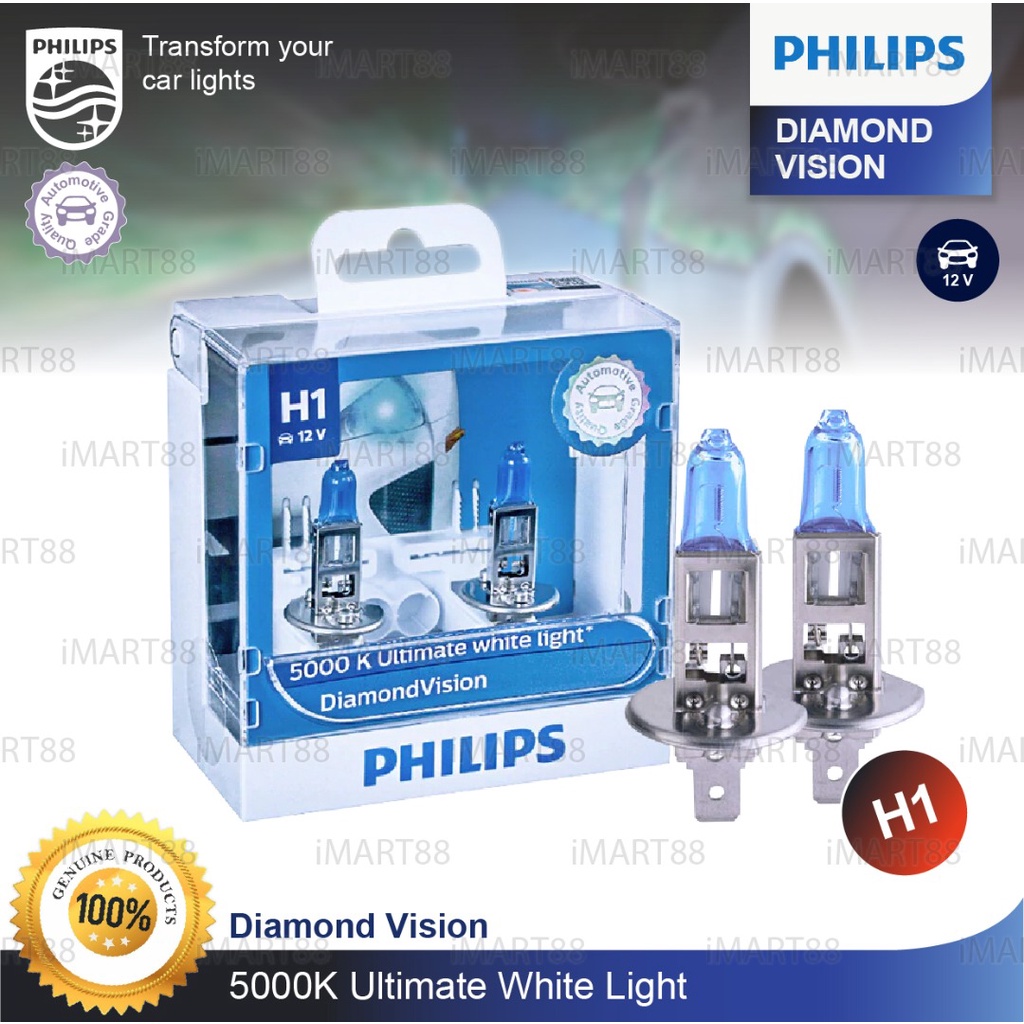 Original Philips Diamond Vision H1 H3 H4 H7 H8 H11 HB3 HB4 Headlight Bulb 5000K White Light Fog Lamp Mentol Lampu Bulbs