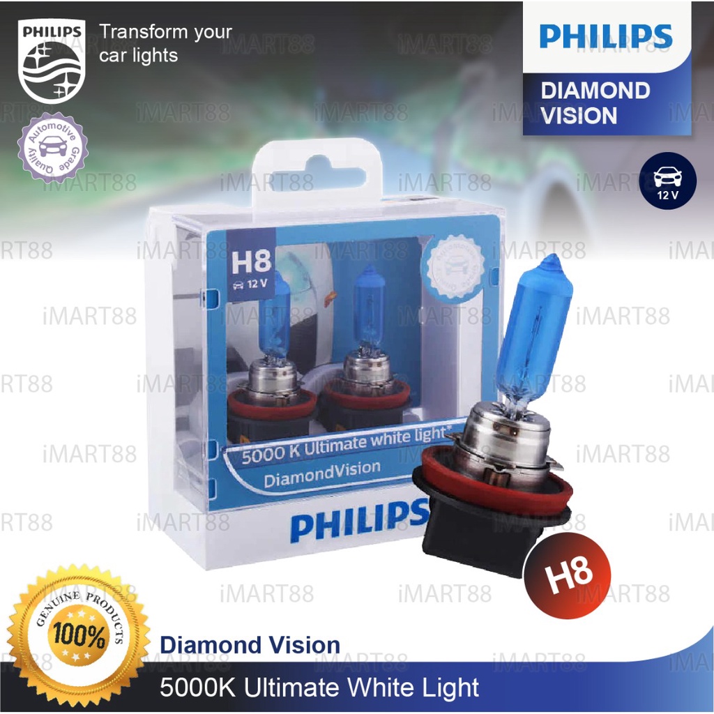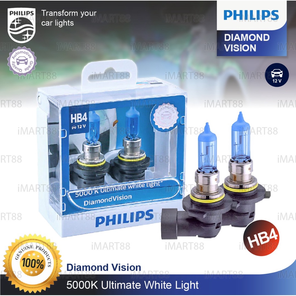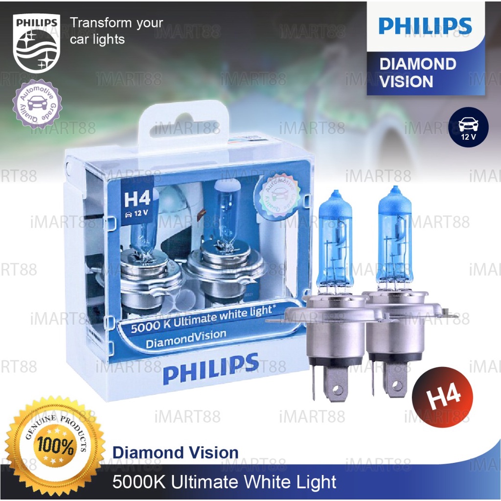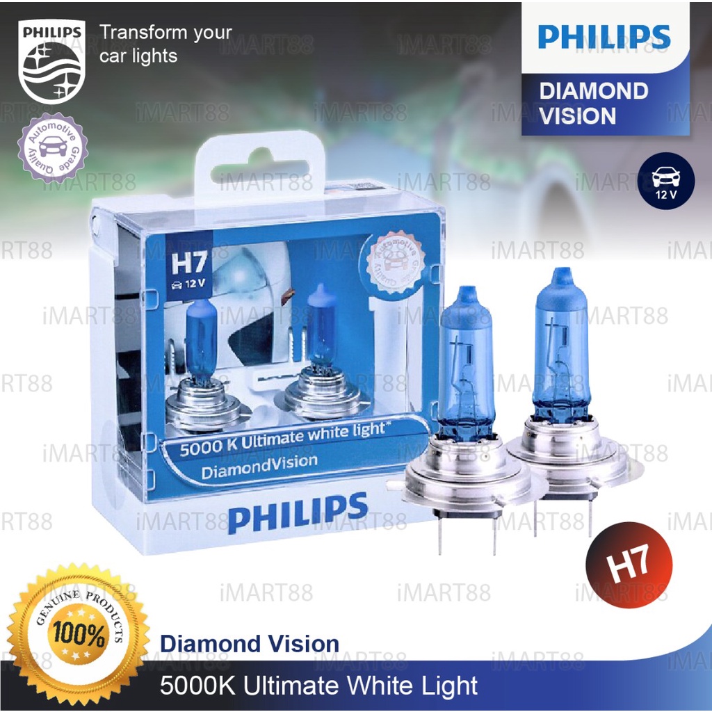 Original Philips Diamond Vision H1 H3 H4 H7 H8 H11 HB3 HB4 Headlight Bulb 5000K White Light Fog Lamp Mentol Lampu Bulbs