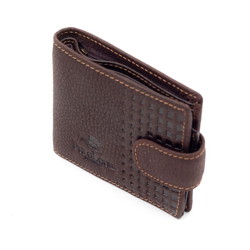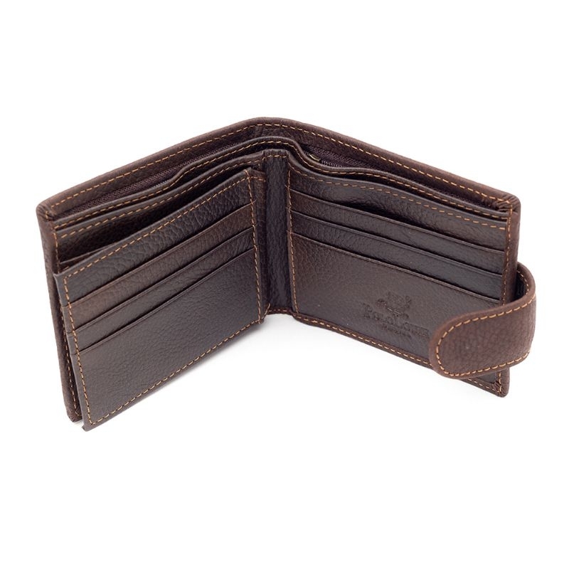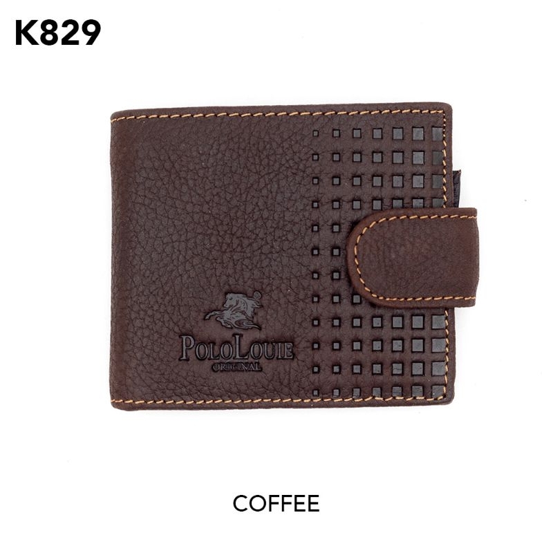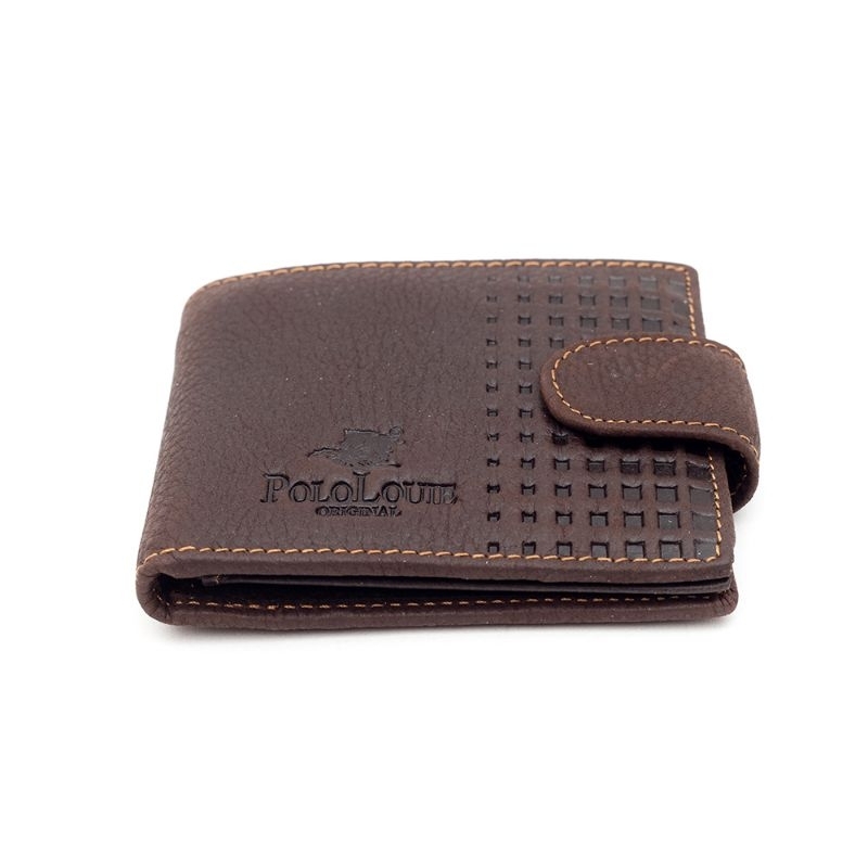 Original Polo Louie Men's Genuine Leather Button Wallet Check Pattern Card Purse Dompet Lelaki