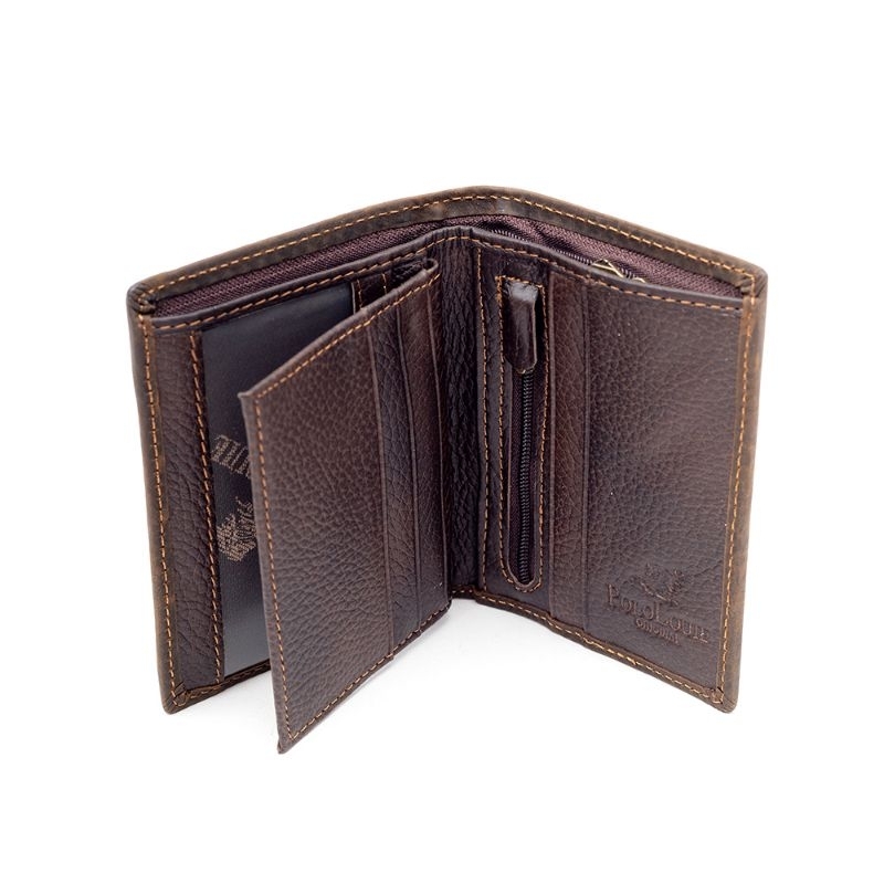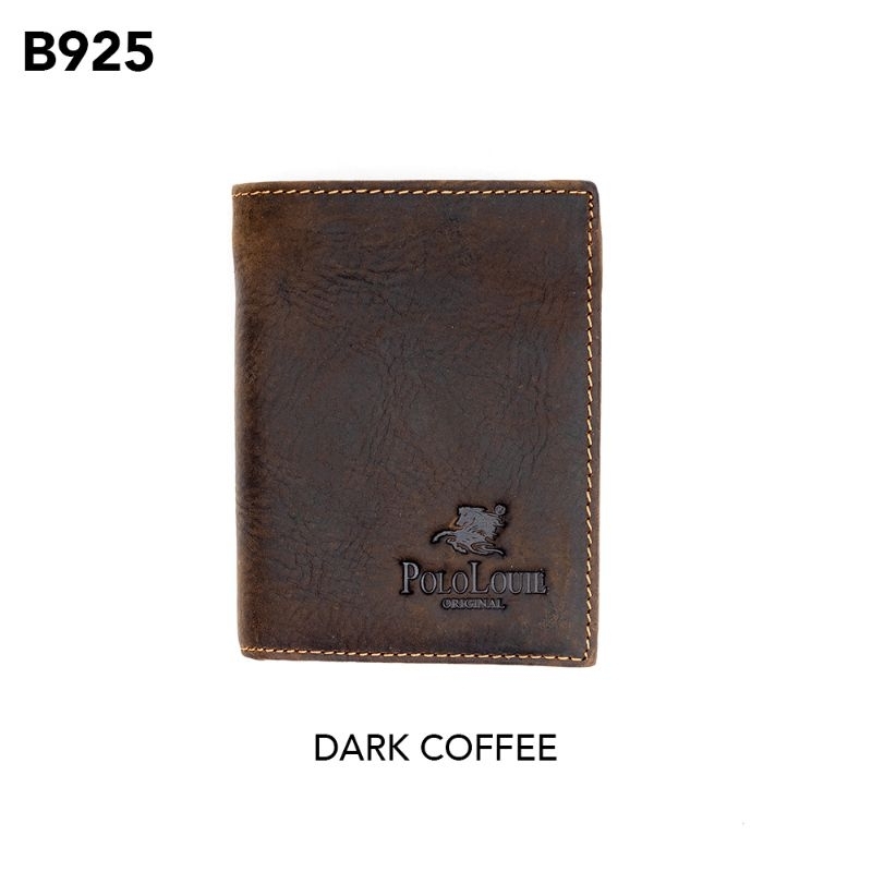 Original Polo Louie Men's Genuine Leather Vertical Bi-Fold Wallet Smart Card Purse Dompet Lelaki