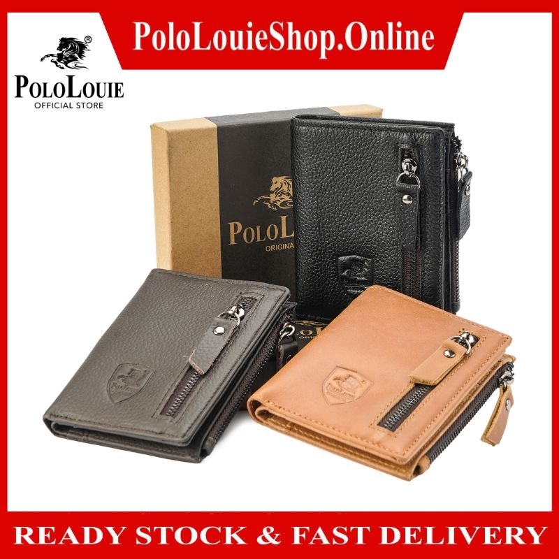 Original Polo Louie Men Genuine Cow Leather Luxury Wallet Card Purse Dompet Kulit