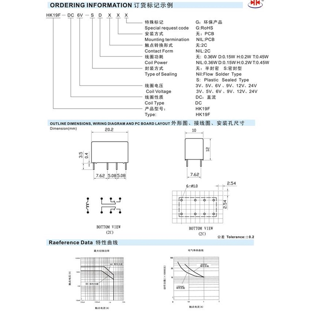 Original Relay HK19F SHG 5V 12V 24V 8Pin 2A SPDT New