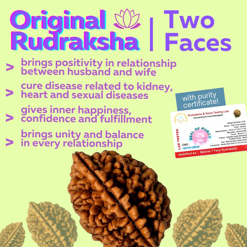Original Rudraksha 2 Mukhi ( 2 Faces/ 2 Mugam) Rudraksha Bead With Lab Certificate (RARE)