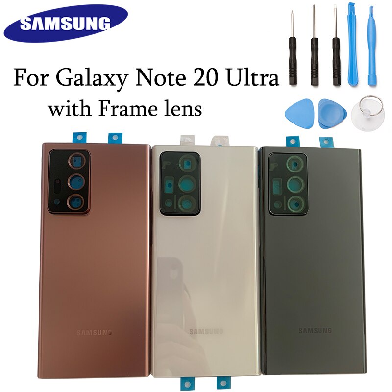 Original SAMSUNG Galaxy NOTE 20 Ultra 5G Battery glass Back Cover Rear Door Case Replacement Part with Frame lens with tools